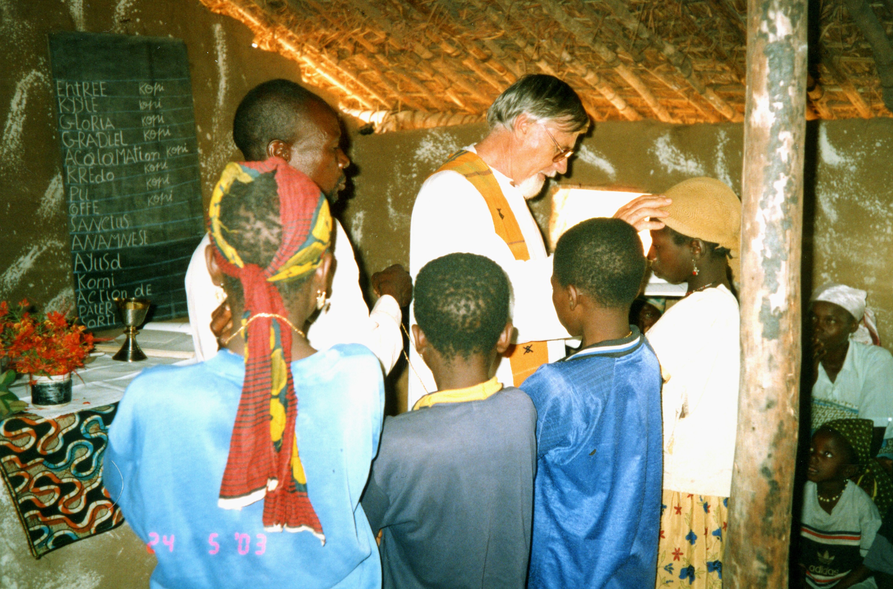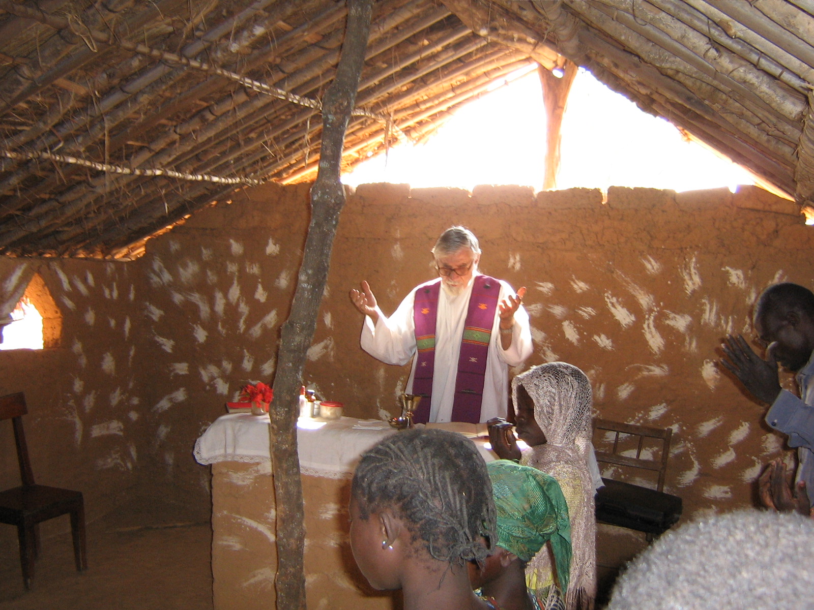 Sono arrivato a Niem a dicembre del 1986. Ho trovato una cappella e la brousse tutt’intorno. La cappella era assistita dai cappuccini, che venivano uno o due volte all’anno, poi ce n’era una seconda a 80 km, visitata una volta l’anno. Dovevo sistemarmi e ho pensato di fare una casetta in paglia, come nel luogo si usa; poi ho cominciato il mio lavoro.