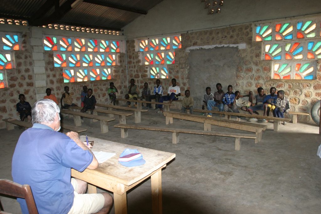 Ero stato destinato qui come parroco, per creare la parrocchia che non esisteva e studiare le caratteristiche del posto per vedere come aiutare questa gente. Ho cominciato allora a girare per vedere le necessità dal punto di vista pastorale e mi sono accorto che l’istruzione era a zero: nessuno parlava il sango, nessuno parlava il francese, tutti usavano il baià (un dialetto della zona) e – proprio per evitare che la gente continuasse a parlarlo – io non l’ho imparato. Ma mi sono detto: qui c’è da fare per tirar fuori questa gente dall’ignoranza e dalla povertà intellettuale.