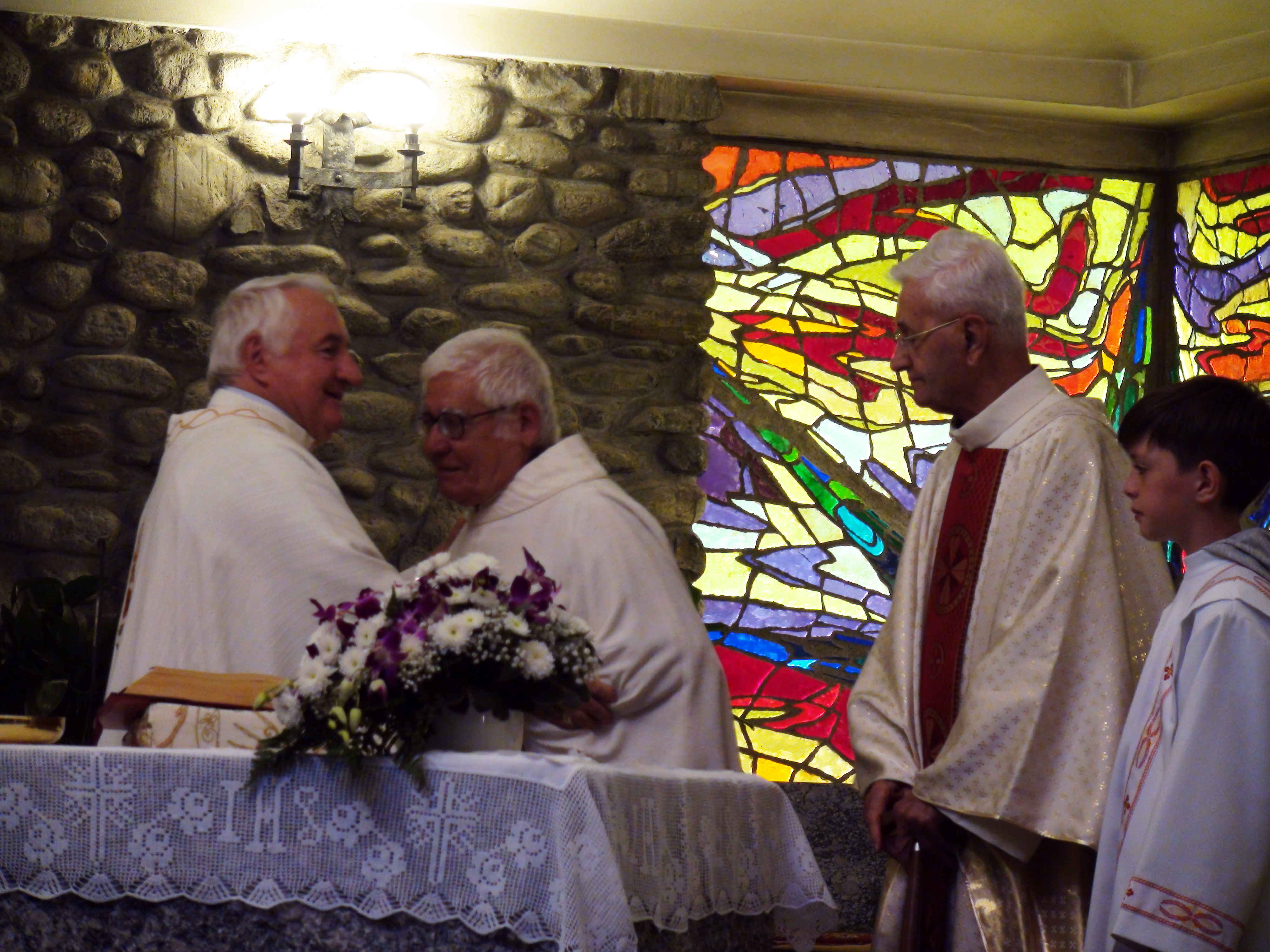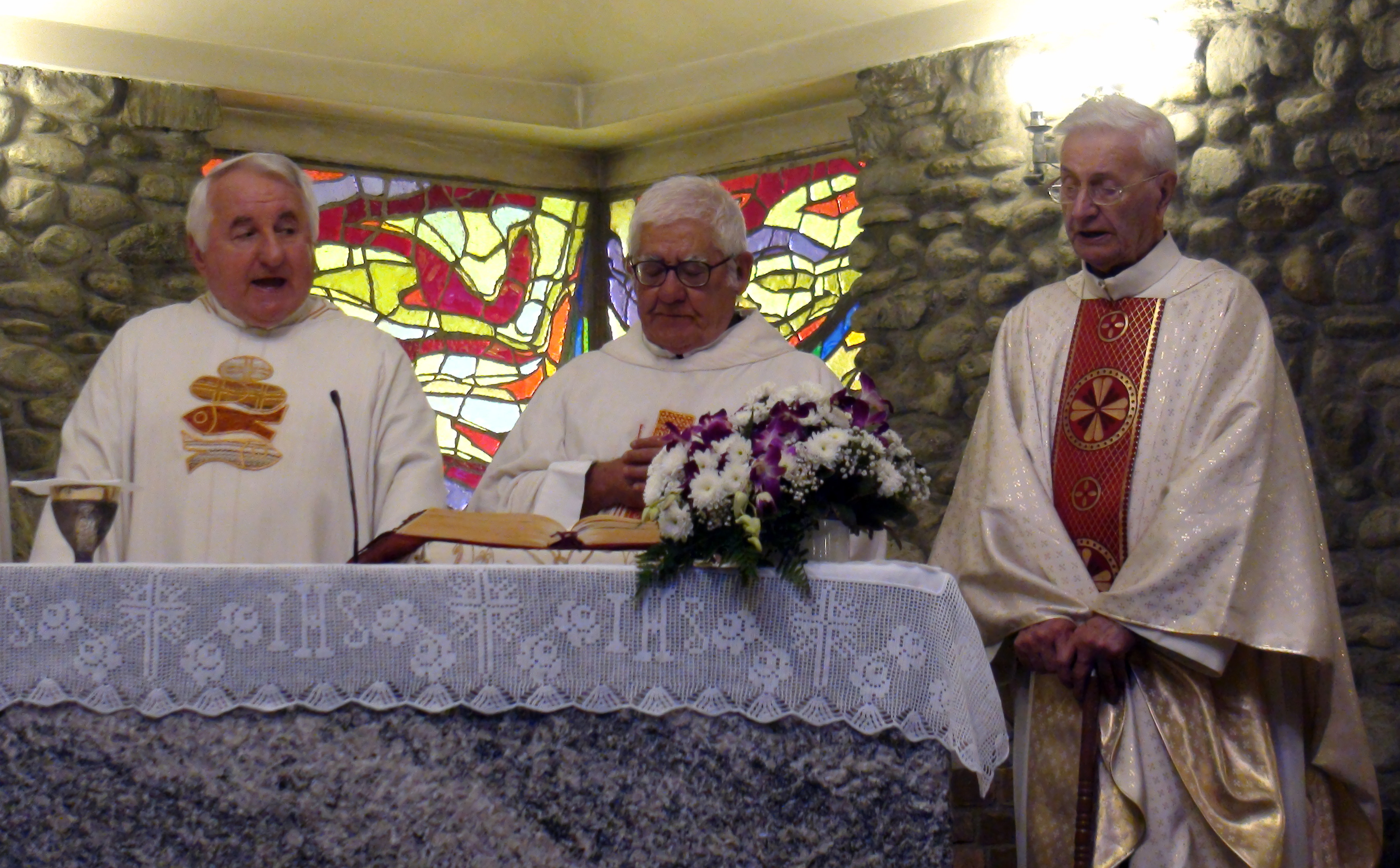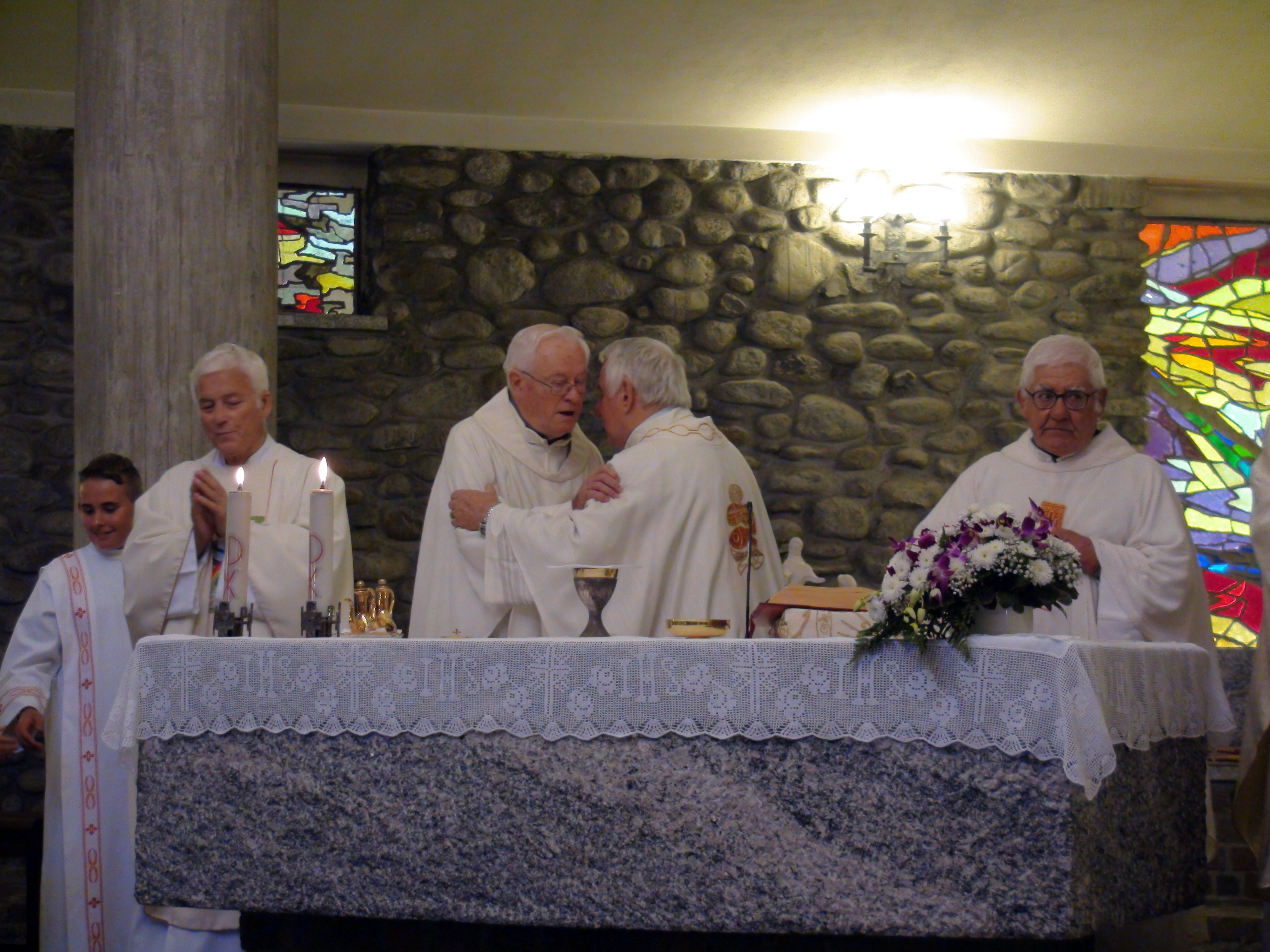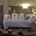 Hanno aspettato più di sei mesi pur di festeggiare insieme l’anniversario di ordinazione sacerdotale. Ma domenica scorsa, 9 settembre, padre Francesco Radaelli, Alessandro Paniga e Ugo Donini si sono ritrovati sull’altare per ricordare i 50 anni della loro prima messa celebrata a Roma il 17 dicembre 1967. La ricorrenza è stata rimandata per aspettare il ritorno di padre Ugo, missionario in Thailandia e originario di Morbegno proprio come padre Alessandro. Per questo ad ospitare e festeggiare l’anniversario è stata la comunità la frazione cittadina di Paniga con cui ha un legame anche il terzo compagno di messa, padre Francesco, autore delle vetrate della Chiesa Madonna delle Grazie realizzata dall’architetto Luigi Caccia Dominioni. Dopo la messa – concelebrata con il parroco di Desco-Campovico, don Battista Galli – i fedeli si sono spostati nella vicina frazione di Desco che ha offerto il pranzo. A festeggiare con i confratelli, anche i betharramiti Celeste Perlini e Alberto Pensa, che – attualmente in Italia per un periodo di riposo – ha rappresentato la Thailandia in una ricorrenza così importante per il suo storico missionario.