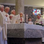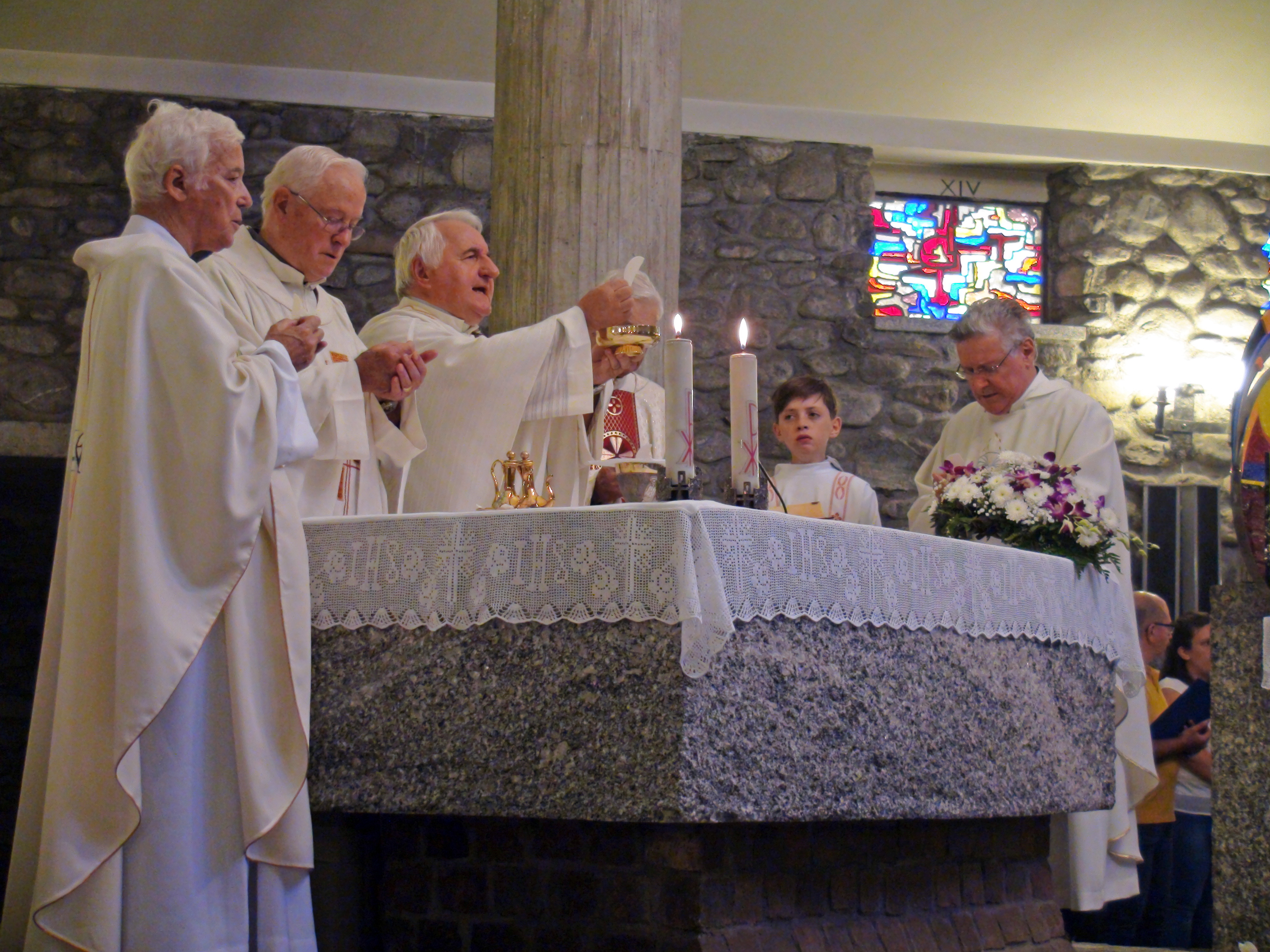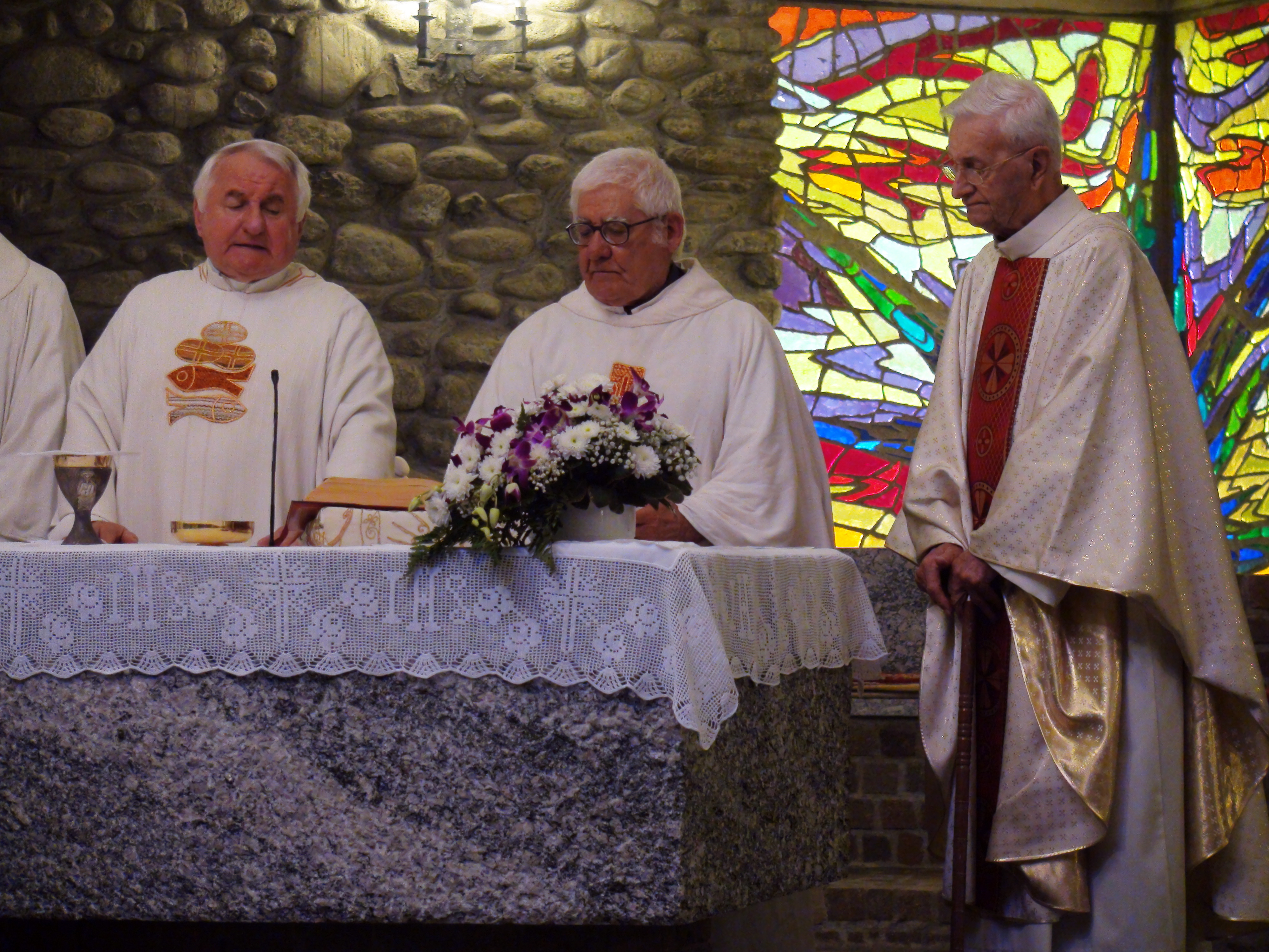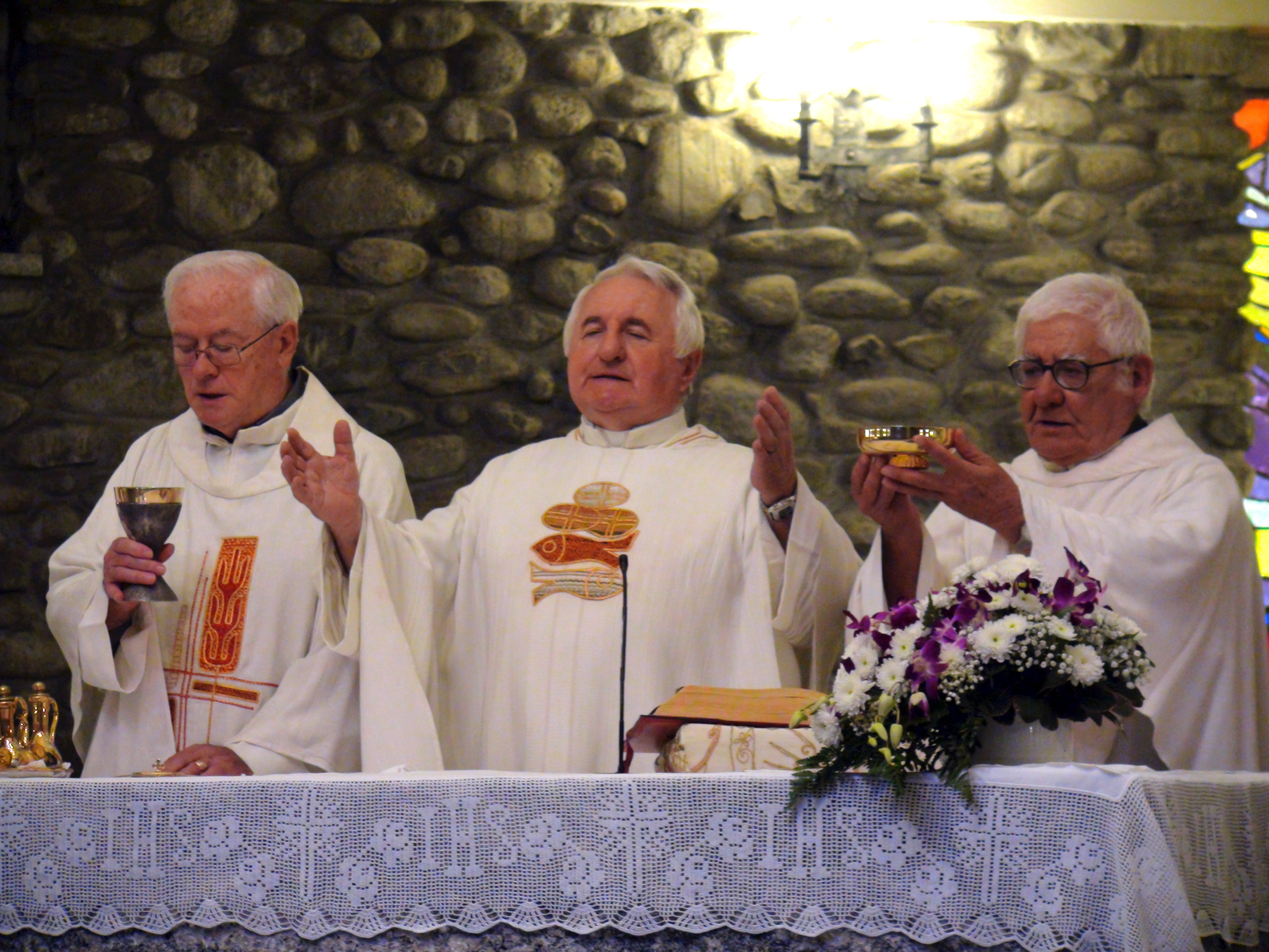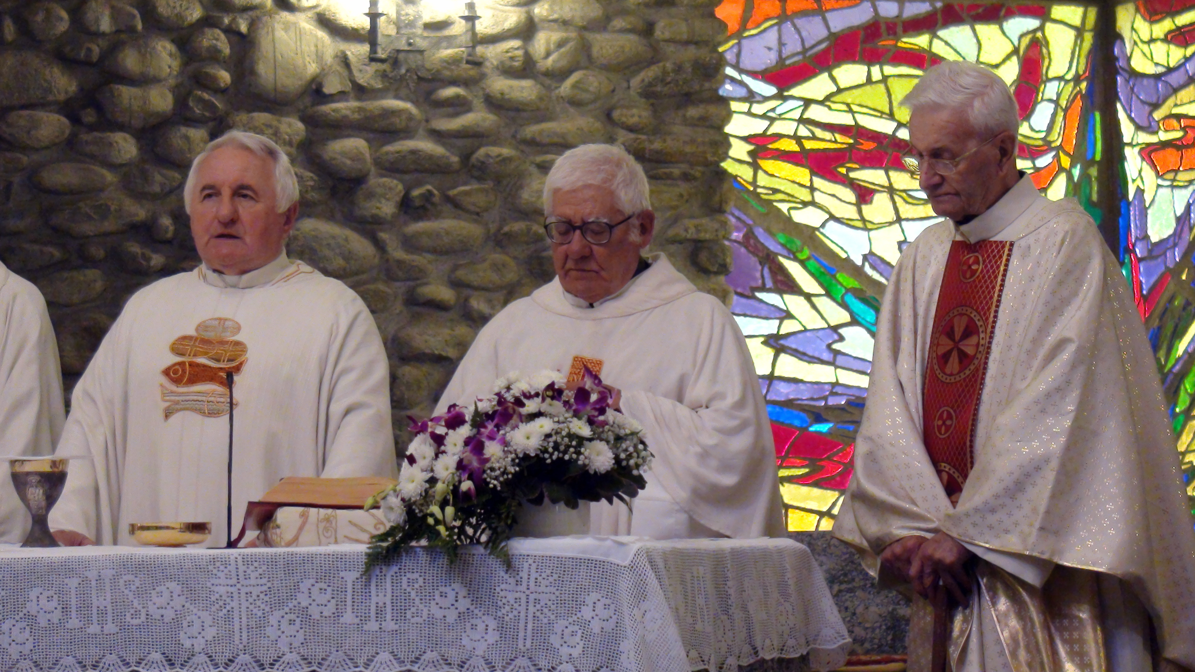 Hanno aspettato più di sei mesi pur di festeggiare insieme l’anniversario di ordinazione sacerdotale. Ma domenica scorsa, 9 settembre, padre Francesco Radaelli, Alessandro Paniga e Ugo Donini si sono ritrovati sull’altare per ricordare i 50 anni della loro prima messa celebrata a Roma il 17 dicembre 1967. La ricorrenza è stata rimandata per aspettare il ritorno di padre Ugo, missionario in Thailandia e originario di Morbegno proprio come padre Alessandro. Per questo ad ospitare e festeggiare l’anniversario è stata la comunità la frazione cittadina di Paniga con cui ha un legame anche il terzo compagno di messa, padre Francesco, autore delle vetrate della Chiesa Madonna delle Grazie realizzata dall’architetto Luigi Caccia Dominioni. Dopo la messa – concelebrata con il parroco di Desco-Campovico, don Battista Galli – i fedeli si sono spostati nella vicina frazione di Desco che ha offerto il pranzo. A festeggiare con i confratelli, anche i betharramiti Celeste Perlini e Alberto Pensa, che – attualmente in Italia per un periodo di riposo – ha rappresentato la Thailandia in una ricorrenza così importante per il suo storico missionario.