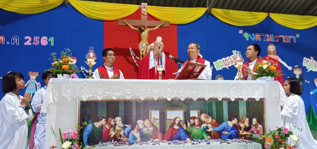 monsignor Joseph Vuthilert Haelom, vescovo della diocesi di Chiang Rai, eretta da papa Francesco nell’anno in corso che ha fatto visita al Centro e inaugurato il campo con una messa celebrata insieme ai padri John Chan, Peter  Mayoe.