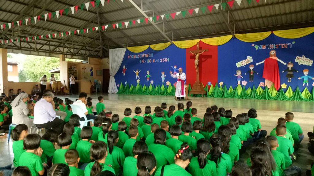 “Seguimi” (ตามเรามา): ecco il titolo del tradizionale campo organizzato all’Holy Family Catholic Centre nel mese di ottobre, in concomitanza con le vacanze previste dall’anno scolastico thailandese. Per sette giorni il gruppo delle ragazze più grande – l’infaticabile “Team Ngam” – ha organizzato il campo estivo insieme a quattro suore della congregazione di Saint Paul de Chartres e cinque seminaristi  betharramiti provenienti dalla casa di formazione di Ban Garicoits a Sampran. Al campo estivo hanno partecipato 210 bambini e bambine dei villaggi: sono stati impegnati in giochi, sport e laboratori di creatività ma anche in incontri di catechesi calibrati sui bambini, i quali – per la maggior parte – frequentano le scuole buddiste nel Paese. Il primo giorno di vacanza è arrivato al Centro anche