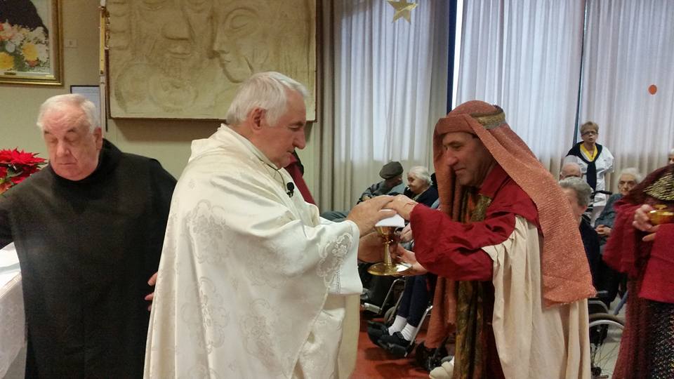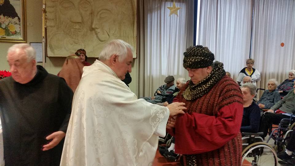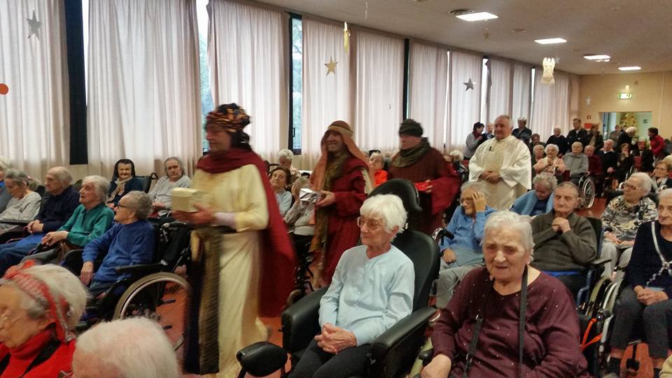 Quella di Solbiate non è una comunità betharramita nel senso ufficiale del termine eppure intorno alla casa di riposo “San Carlo Borromeo” gestita dall’ordine Fatebenefratelli in questi anni si sono aggregati – pur con diversi ruoli nella casa – ben tre padri del Sacro Cuore. Di loro raccontiamo poco, anche da queste pagine virtuali, un po’ per via del contesto protetto di cui si andrebbe a trattare, un po’ perché è sempre difficile da lontano trovare notizie nella quotidianità spicciola. Eppure i padri Alessandro Paniga, Luigi Speziale ed Ermanno Rasero (il primo cappellano della struttura, i secondi ospiti della stessa) sono un gruppo – una “comunità” appunto – meritevole di essere raccontata perché testimoniano il carisma di san Michele nel contesto difficile della vecchiaia e della malattia. Anche se tutte le comunità betharramite del Vicariato hanno celebrato le festività dal Natale all’Epifania, abbiamo scelto dunque di pubblicare una carrellata di fotografie delle giornate di festa trascorse nella clinica di Solbiate, piene di semplicità, di condivisione e fraternità pur nella vecchiaia e nelle sofferenze.
