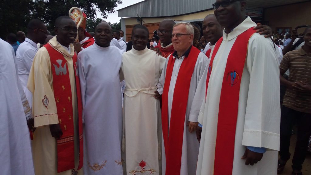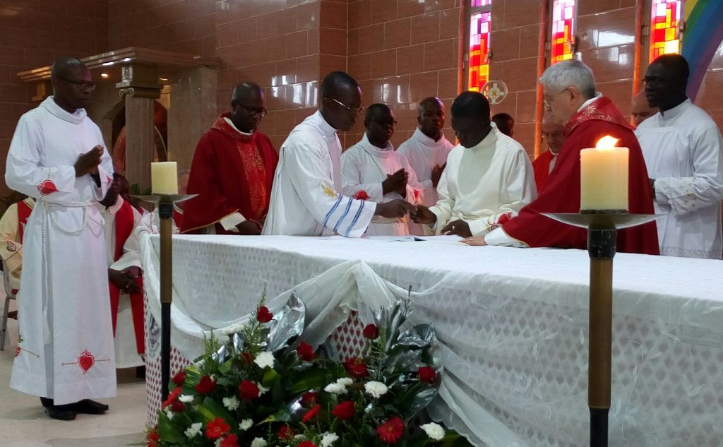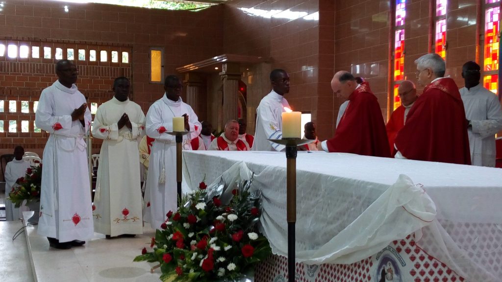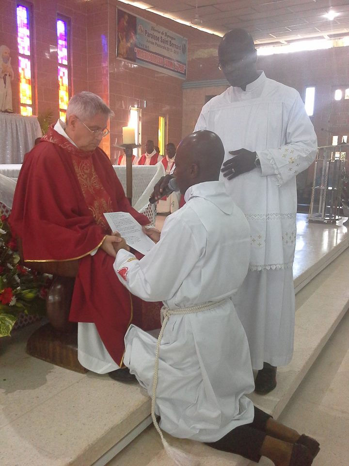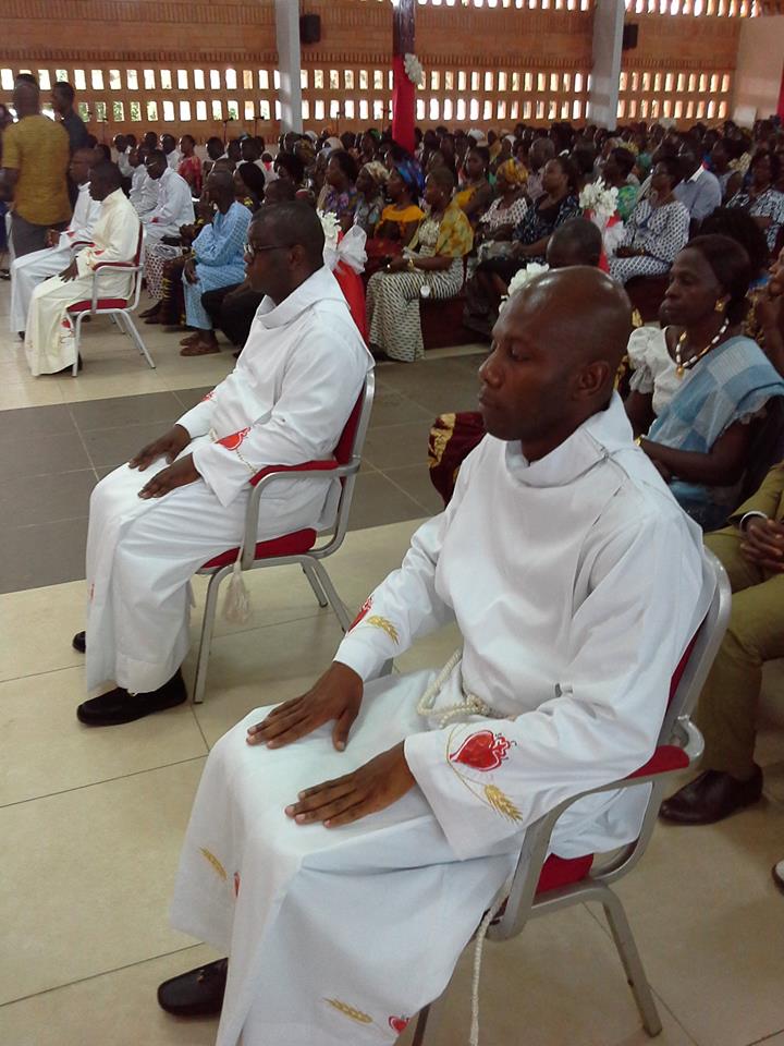 Apriamo una finestra sulle missioni in Costa d’Avorio, dove ad Adiapodoumé quattro giovani hanno fatto la loro professione perpetua. Si tratta di Armel Daly Vabié, Hermann Bahi Djison, Marie-Paulin Yarkai e Valentin N’Guessan N’Zoré che, con la loro scelta, il 14 settembre scorso nella parrocchia Saint Bernard hanno fatto fare un passo in avanti alla congregazione in Africa. Due di questi giovani, infatti, Paulin e Armel sono legatissimi alla Repubblica Centrafricana, dove la congregazione ha un’altra missione. Il primo è cresciuto presso la missione Notre Dame de Fatima a Bouar e poi, come seminarista, nella missione Sacre Coeur a Niem; il secondo, ivoriano, da due anni vive e collabora presso la missione di Saint Michel a Bouar, dove segue la formazione dei giovani in cammino.