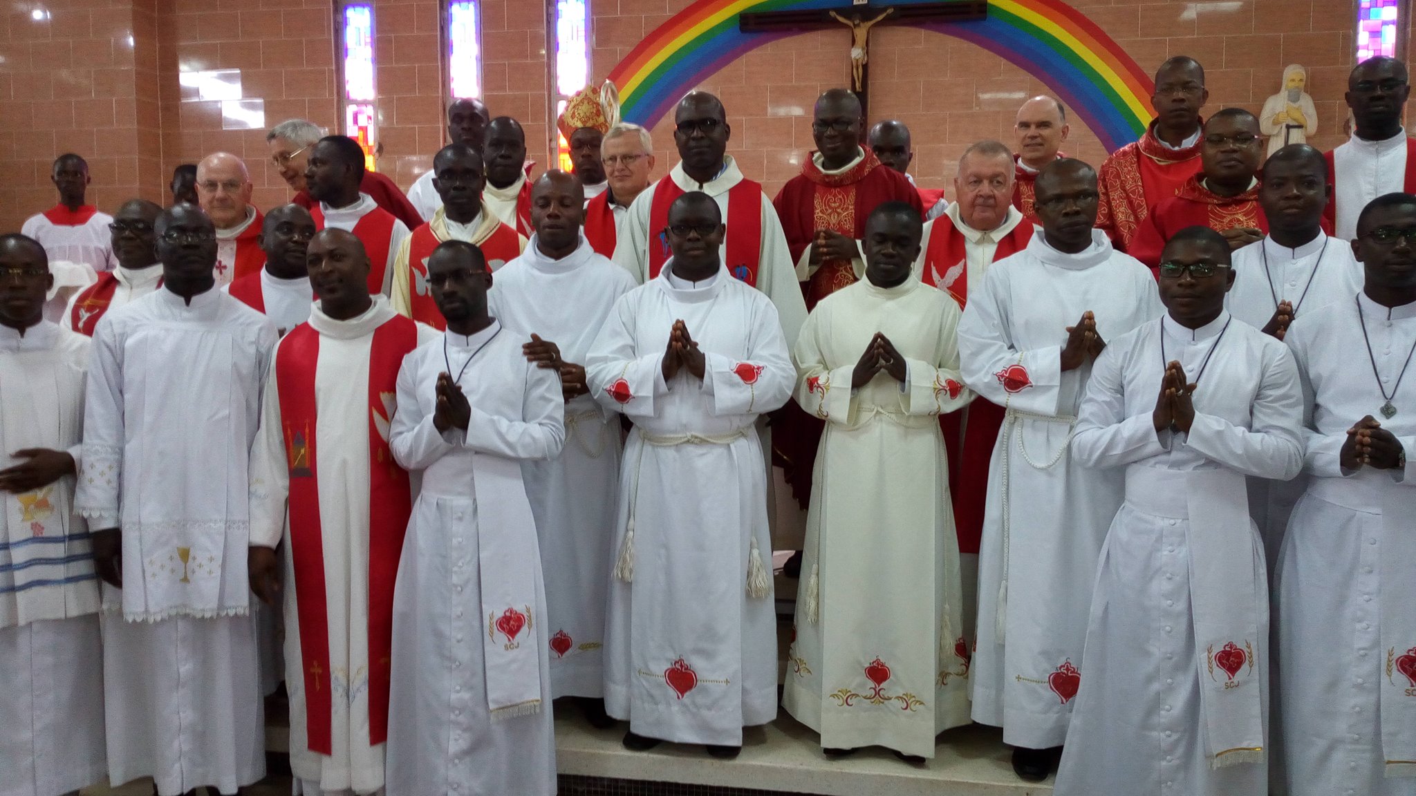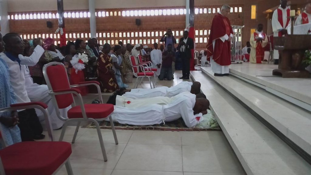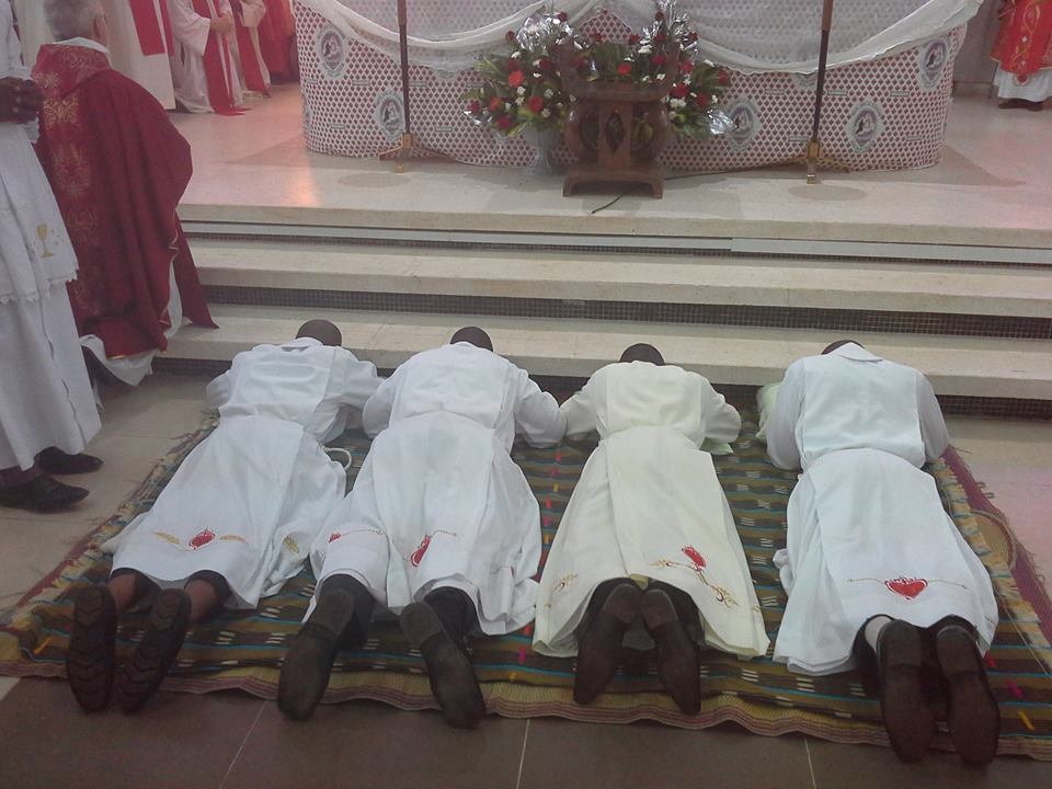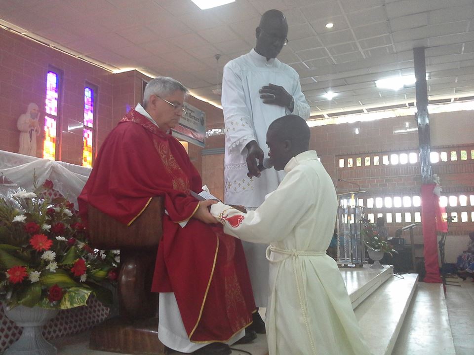 Apriamo una finestra sulle missioni in Costa d’Avorio, dove ad Adiapodoumé quattro giovani hanno fatto la loro professione perpetua. Si tratta di Armel Daly Vabié, Hermann Bahi Djison, Marie-Paulin Yarkai e Valentin N’Guessan N’Zoré che, con la loro scelta, il 14 settembre scorso nella parrocchia Saint Bernard hanno fatto fare un passo in avanti alla congregazione in Africa. Due di questi giovani, infatti, Paulin e Armel sono legatissimi alla Repubblica Centrafricana, dove la congregazione ha un’altra missione. Il primo è cresciuto presso la missione Notre Dame de Fatima a Bouar e poi, come seminarista, nella missione Sacre Coeur a Niem; il secondo, ivoriano, da due anni vive e collabora presso la missione di Saint Michel a Bouar, dove segue la formazione dei giovani in cammino.