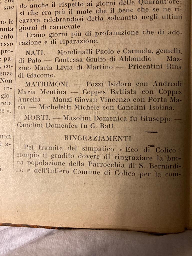 Colico: la nascita di Ca’ Bepin nel trafiletto ritrovato
