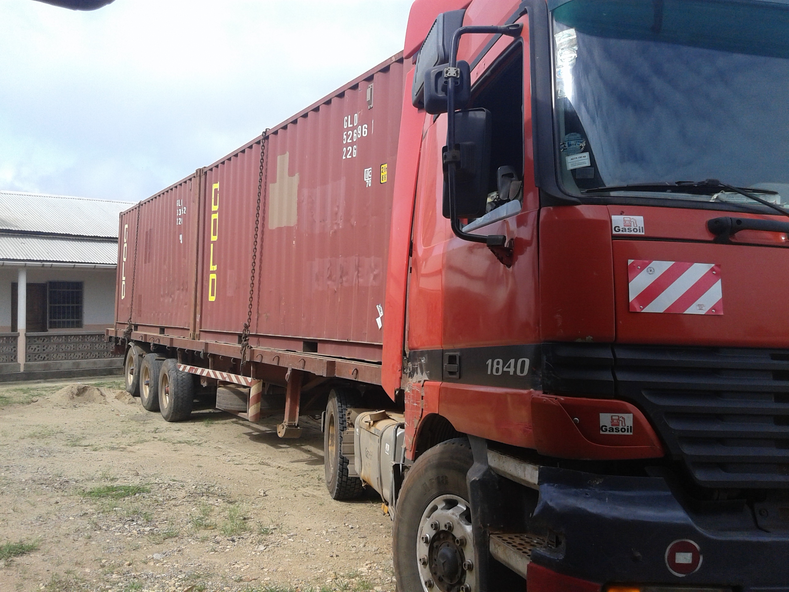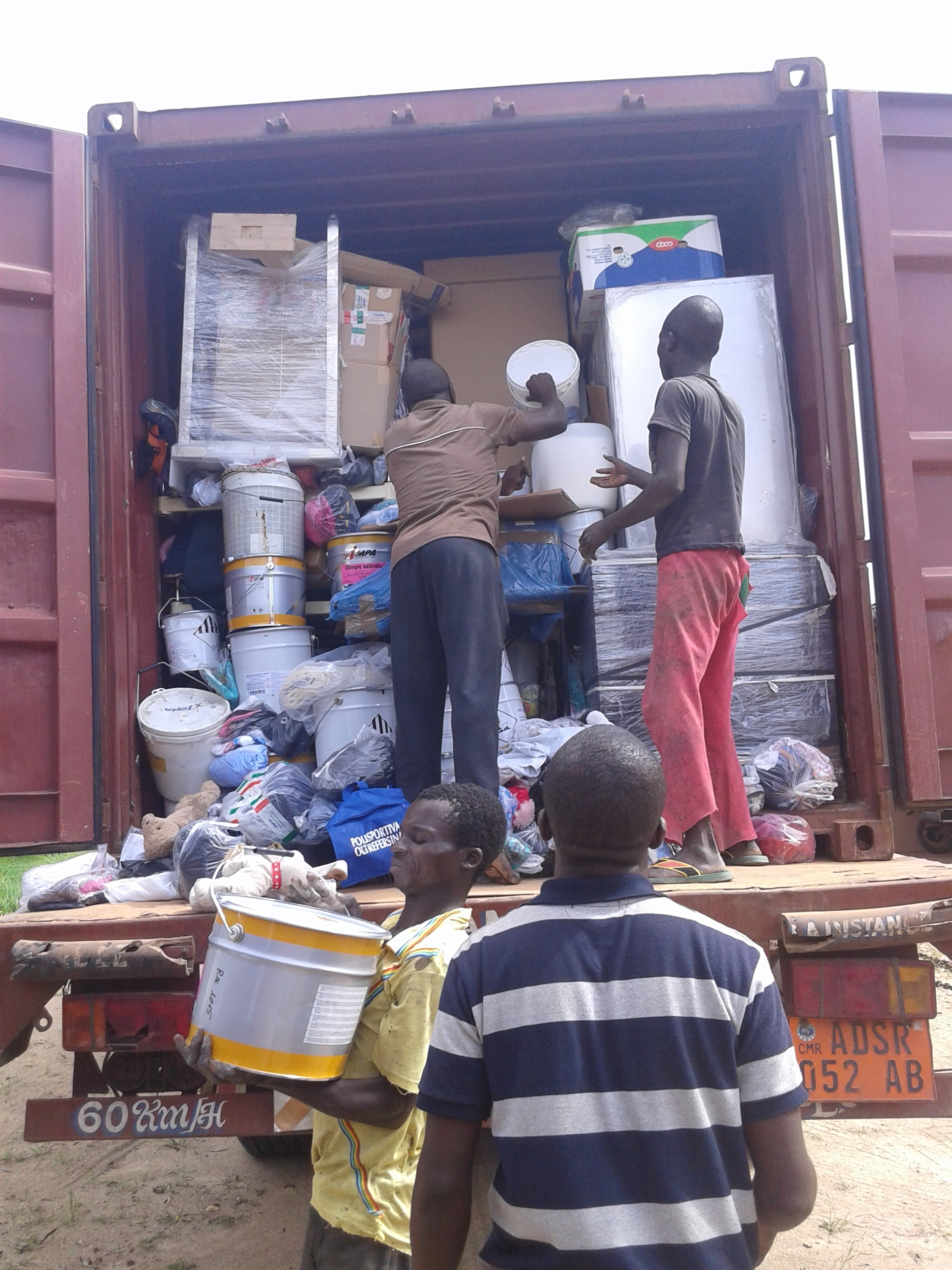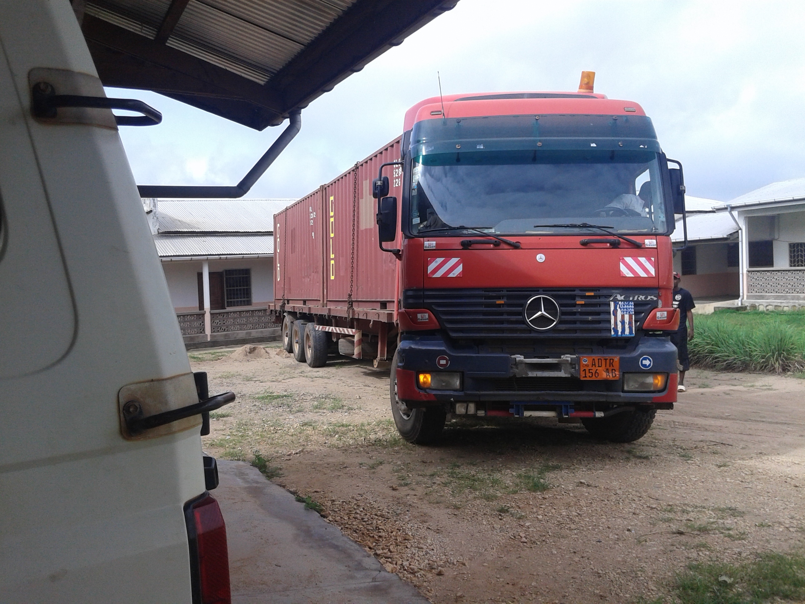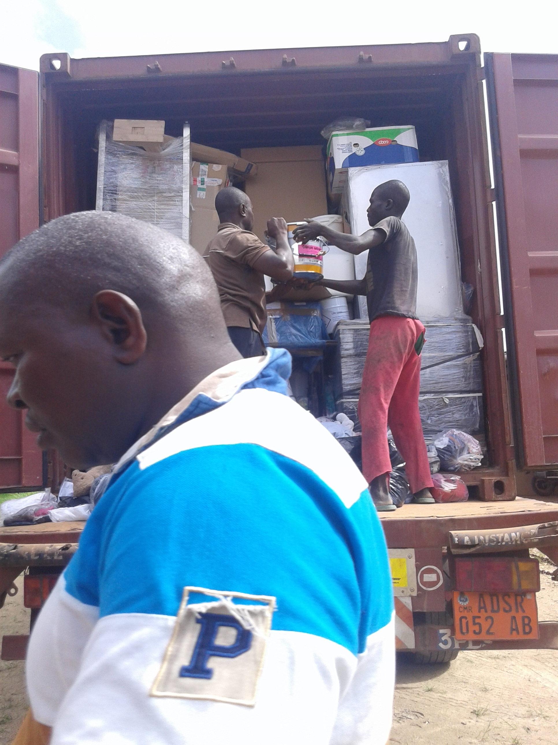 Nel corso degli anni si è consolidato una sorta di rito per permettere l’arrivo dei grossi cassoni nella missione: i camion che arrivano dal porto di Douala in Camerun non possono continuare sulla strada che dalla città di Bouar porta a Niem (soprattutto nel periodo delle piogge); inoltre non esiste un mezzo adatto a scaricare i container pieni per poi ricaricarli su un camion più piccolo adatto ad affrontare il percorso… Non si può far altro dunque che svuotare il contenuto dei cassoni a mano, togliere poi il container vuoto, installarlo su un nuovo mezzo e riempirlo di nuovo. Una vera avventura che rende il materiale di quei container preziosi come un tesoro.