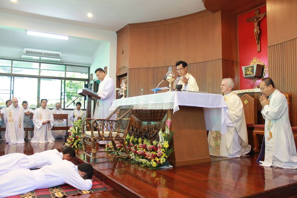 Hanno fatto il loro ingresso definitivo nella congregazione betharramita, dopo gli anni di studio, formazione e discernimento. Alfonso Prasertsepitakkiriboon e John Bosco Somai Sopaopas hanno fatto la professione perpetua nella cappella di Ban Bétharram a Chiang Mai. La celebrazione di sabato 18 marzo, in occasione della ricorrenza di San Giuseppe, è stata presieduta da padre Michael Tidkham, vicario della Thailandia, e dal superiore regionale Austin Hughes. Intorno ai due giovani si sono stretti amici, parenti e padri che sono giunti a Chiang Mai da tutto il Paese. Alfonso ha vissuto questo ultimo anno presso la missione di Maepon, mentre John Bosco ha aiutato Peter Phairote presso il seminario minore di Ban Betharram a Sampran.