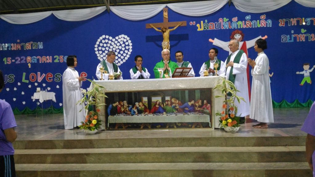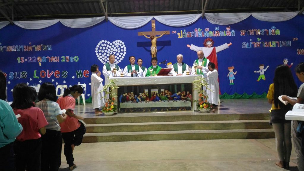 Anche durante le vacanze, una settimana è dedicata a Gesù. Nel periodo di riposo – che cade proprio adesso in Thailandia – il centro betharramita Holy Family Catholic Centre dedica sette giorni alla catechesi di bambini e giovani visto che nel Paese i bambini frequentano di norma scuole buddiste. La settimana serve quindi per far conoscere il cristianesimo attraverso incontri, meditazioni e poi giochi, sport e laboratori di creatività. In particolare quest’anno, da domenica 15 al 22 ottobre, i missionari hanno aperto il campo dal titolo «Gesù mi ama. “Lasciate che i piccoli vengano a me”» e lo hanno concluso celebrando la prima comunione di 70 bambini. All’appuntamento tradizionale hanno però partecipato oltre 300 ragazzi tra gli 11 e i 13 anni i quali sono stati seguiti dai padri John Chan, Peter  Mayoe e Alberto Pensa, da cinque seminaristi e da alcune suore della Congregazione di Saint Paul de Chartres. Fondamentale, come sempre al Centro, l’aiuto e l’organizzazione delle ragazze più grande, il prezioso «Team Ngan».