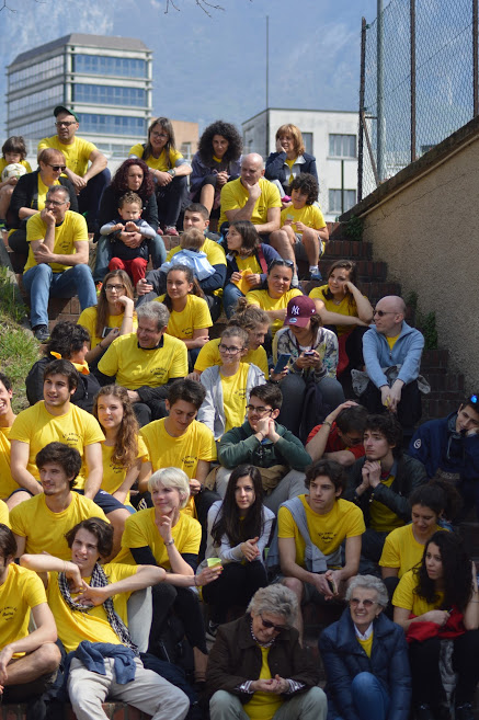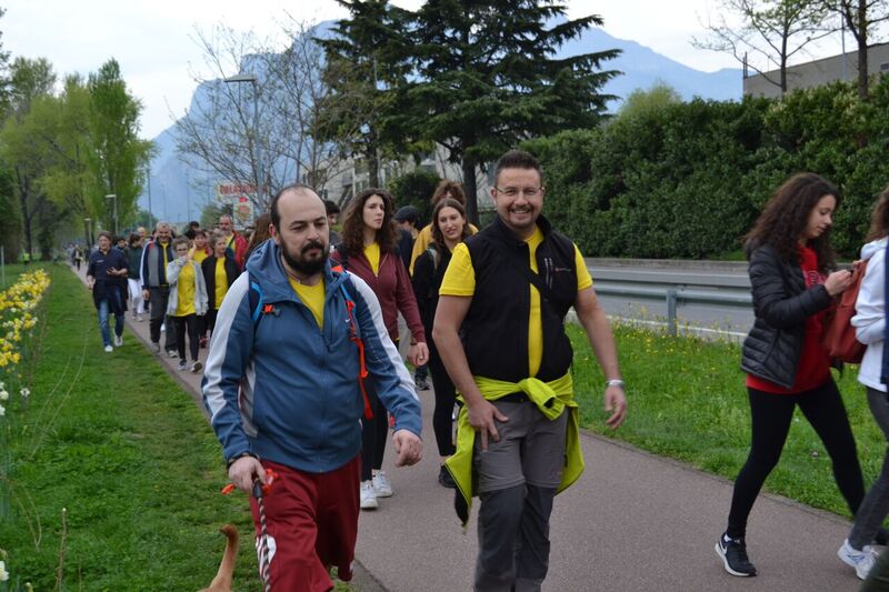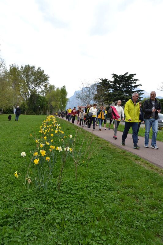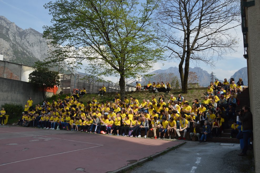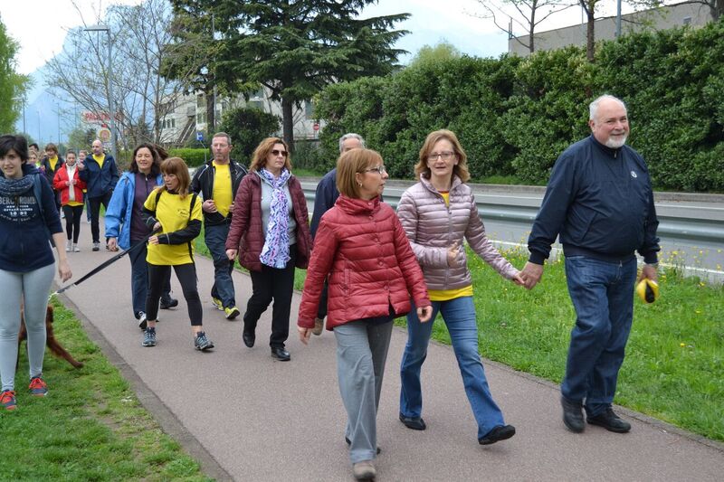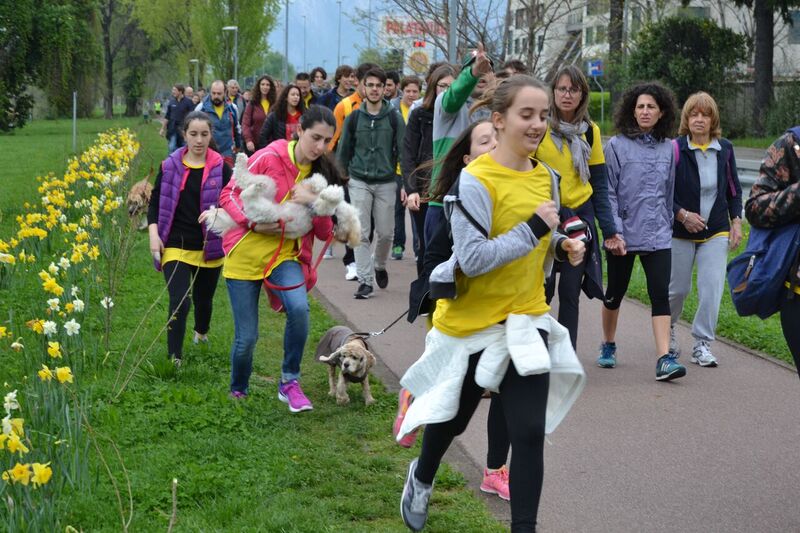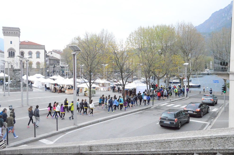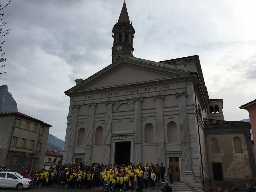 Dopo la messa delle 8.30, dalla Basilica di San Nicolò circa 400 amici di Andrea hanno formato un’unica scia colorata di giallo (grazie alla “divisa ufficiale”, una maglietta gialla) che ha invaso le strade della città di Lecco e ha costeggiato il lago per ben 17 km.