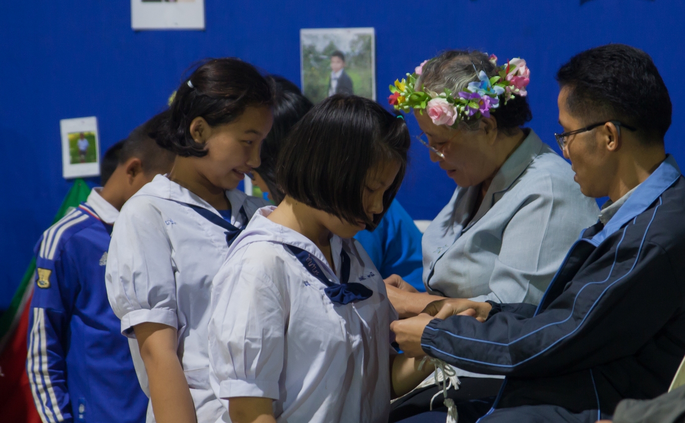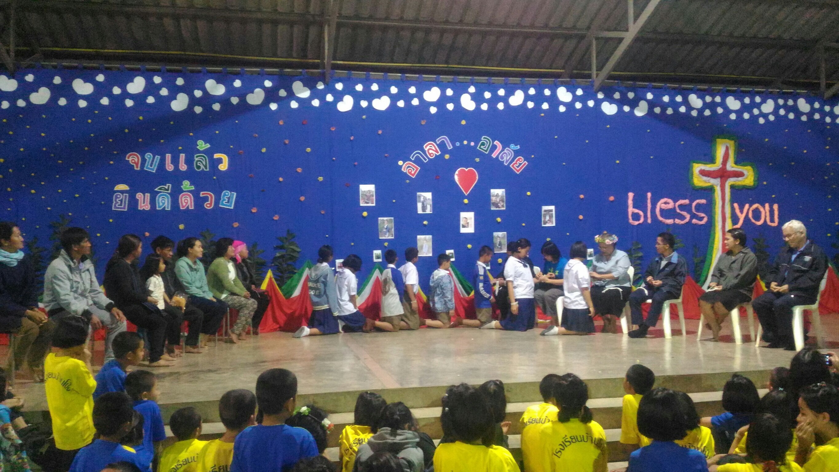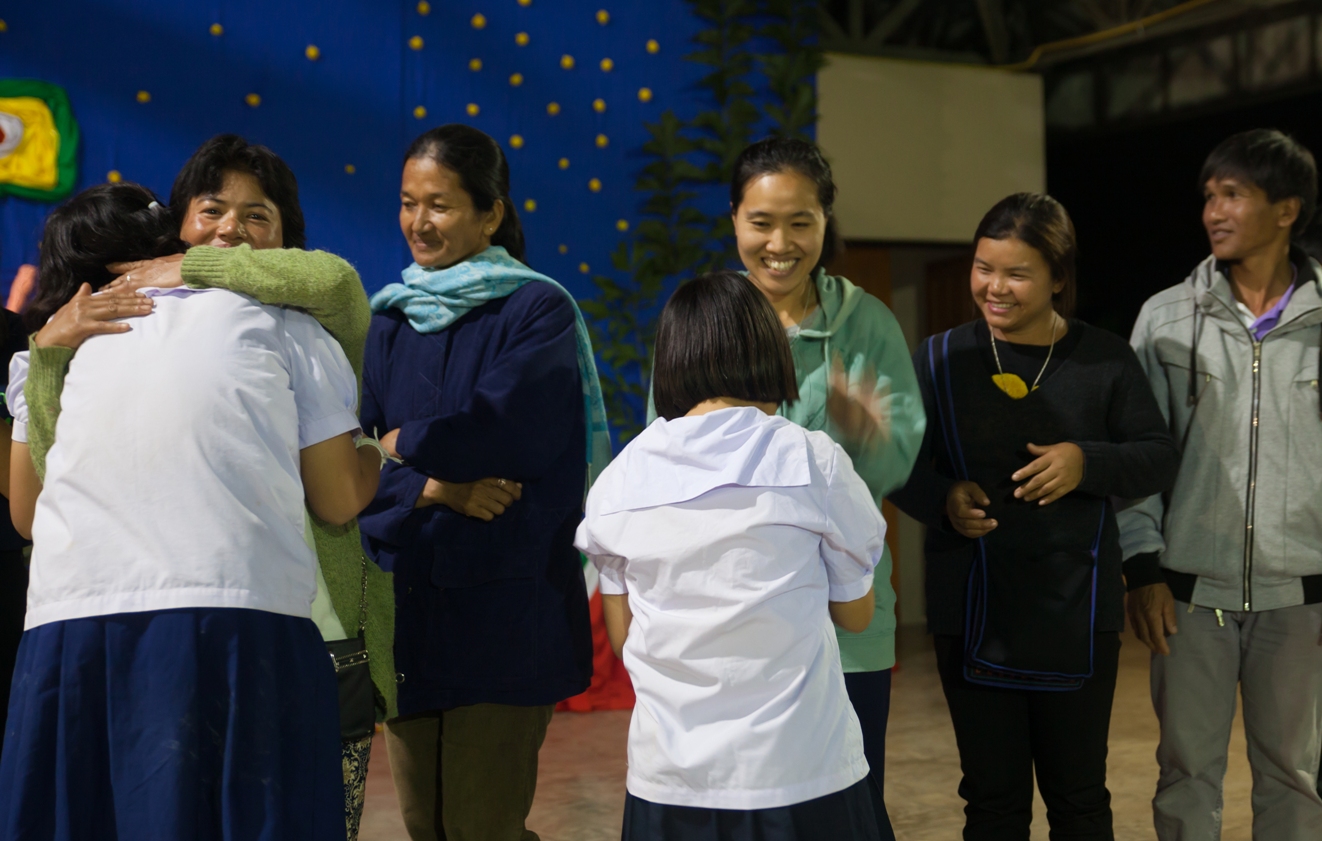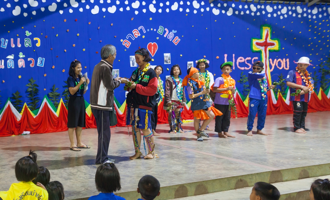 Sabato 10 marzo sul palco sono saliti anche i ragazzi e le ragazze più grandi, quelli che in quella serata chiudevano il primo ciclo d’istruzione scolastica (detto Prathom) in cui sono impegnati i bambini dai sei anni ai 12 anni. Hanno ringraziato tutti i presenti, a partire dai missionari e gli adulti che li hanno accolti da piccoli con un abbraccio toccante e pieno di significato. Poi gli adolescenti si sono rivolti agli ospiti più piccoli in una sorta di rito di passaggio di consegne, che si è svolto sotto lo sguardo attento ed emozionato dei genitori arrivati dai villaggi delle montagne. Adesso alcuni di loro frequenteranno la scuola secondaria (chiamata Matthayom), divisa in due cicli di tre anni ciascuno (il primo, Matthayom ton ton, è comune a tutti; il secondo –Matthayom plai – prevede invece percorsi divisi per specializzazione). Altre ragazze invece resteranno al Centro e cominceranno i corsi professionalizzanti alla scuola di taglio e cucito Bankonthip.