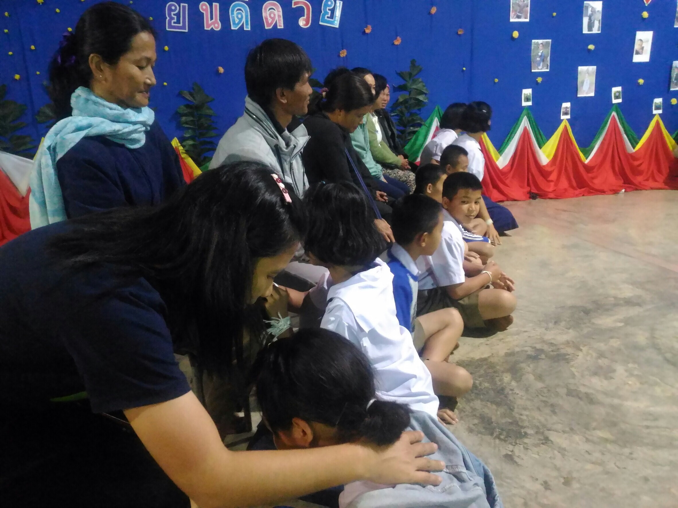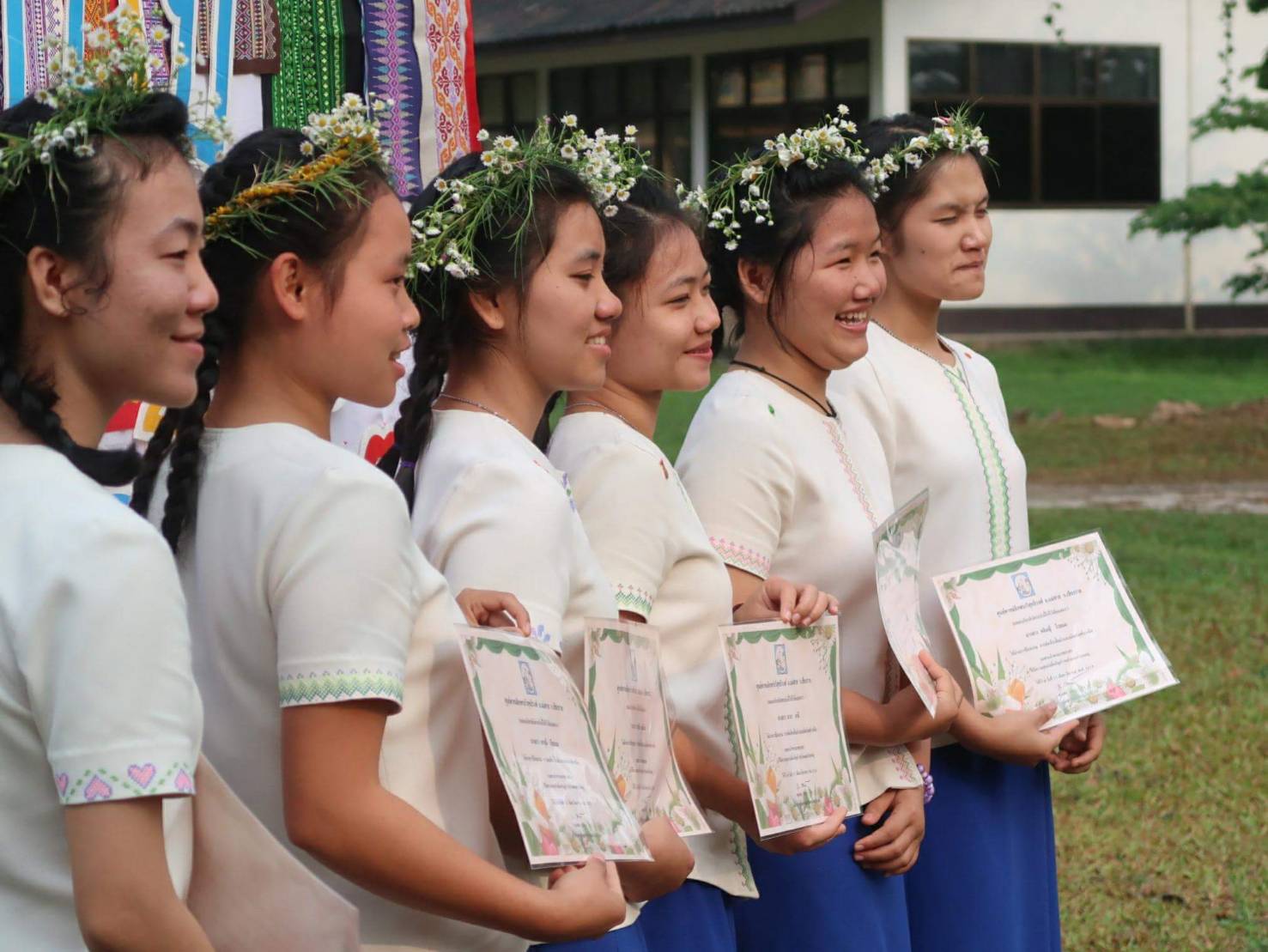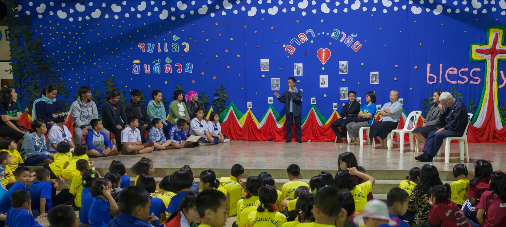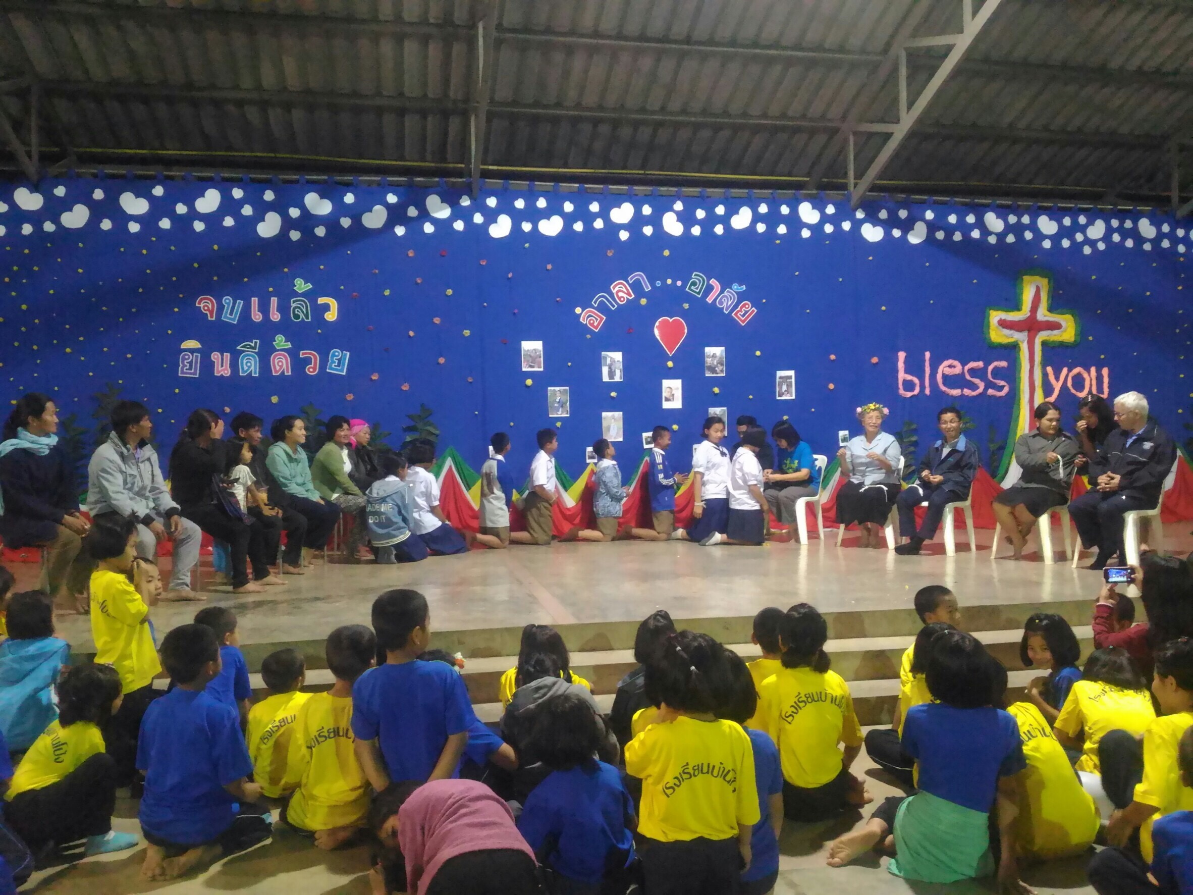 Sabato 10 marzo sul palco sono saliti anche i ragazzi e le ragazze più grandi, quelli che in quella serata chiudevano il primo ciclo d’istruzione scolastica (detto Prathom) in cui sono impegnati i bambini dai sei anni ai 12 anni. Hanno ringraziato tutti i presenti, a partire dai missionari e gli adulti che li hanno accolti da piccoli con un abbraccio toccante e pieno di significato. Poi gli adolescenti si sono rivolti agli ospiti più piccoli in una sorta di rito di passaggio di consegne, che si è svolto sotto lo sguardo attento ed emozionato dei genitori arrivati dai villaggi delle montagne. Adesso alcuni di loro frequenteranno la scuola secondaria (chiamata Matthayom), divisa in due cicli di tre anni ciascuno (il primo, Matthayom ton ton, è comune a tutti; il secondo –Matthayom plai – prevede invece percorsi divisi per specializzazione). Altre ragazze invece resteranno al Centro e cominceranno i corsi professionalizzanti alla scuola di taglio e cucito Bankonthip.