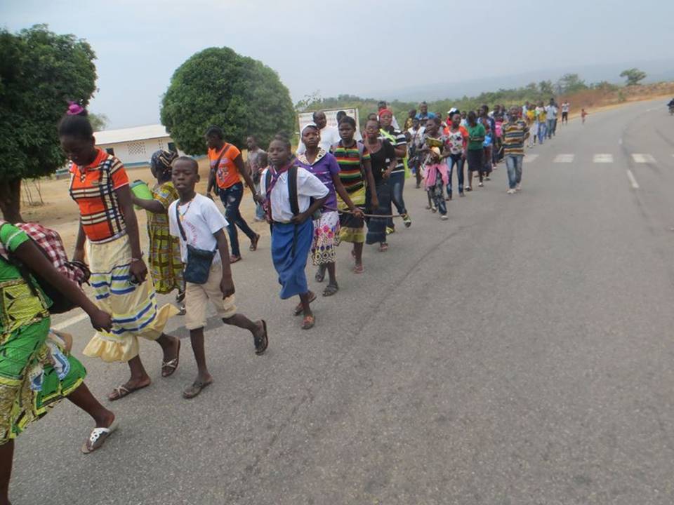 Un pellegrinaggio per le strade africane, con zaini e bastoni. Succede sulla strada che collega Bouar al villaggio di Yolé, appena fuori città. Il cammino per celebrare l’anno giubilare sul tema di riflessione «Andare verso l’altro con misericordia» è stato guidato  da padre Arsene Noba, seguito da un gruppo di parrocchiani (bambini e adulti, ma soprattutto giovani) dalla chiesa di Nostre Dame di Fatima fino al seminario Bambin Gesù. Ecco tante fotografie rubate alla lunga marcia.