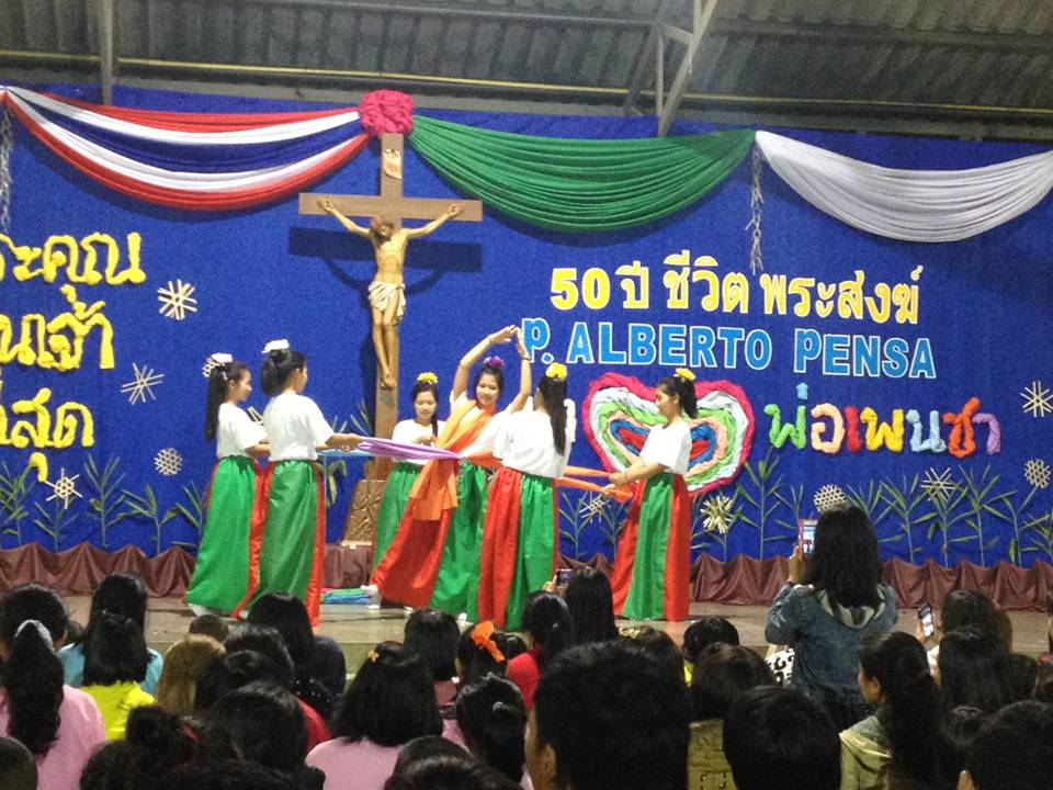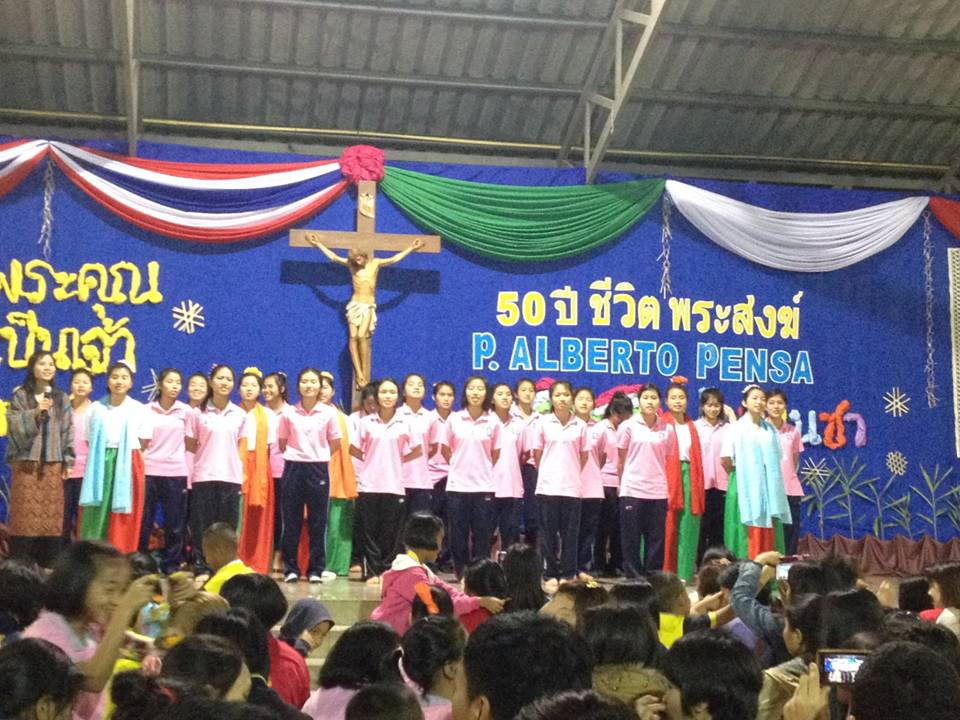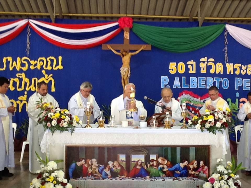 Il giorno successivo, fin dalle prime luci del giorno, il suono della campana dava il benvenuto a circa 1500 persone arrivate da tutti i villaggi per festeggiare ed esprimere il loro grazie a padre Alberto in occasione della ricorrenza del suo 50° di ordinazione, di cui 43 anni passati proprio in terra tailandese.