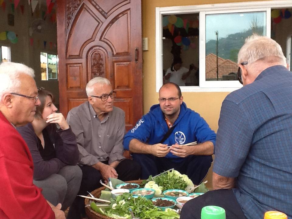 Non può mancare il “pranzo” offerto al missionario e agli ospiti occasionali, seduti tutti su piccoli sgabelli intorno ad un tavolo rotondo, su cui si trova tutto il pranzo: momento di condivisione semplice ma autentico!
