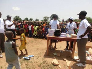 Alla festa di inaugurazione di ciascuna di queste scuole non é mancata la distribuzione di materiale scolastico per i bambini.