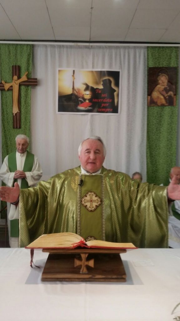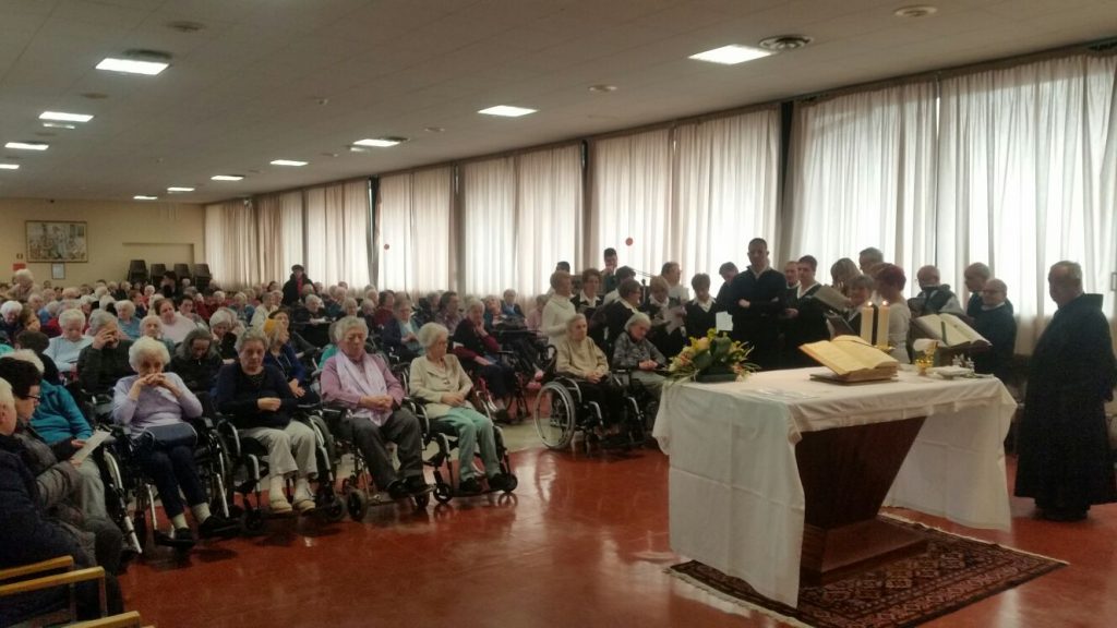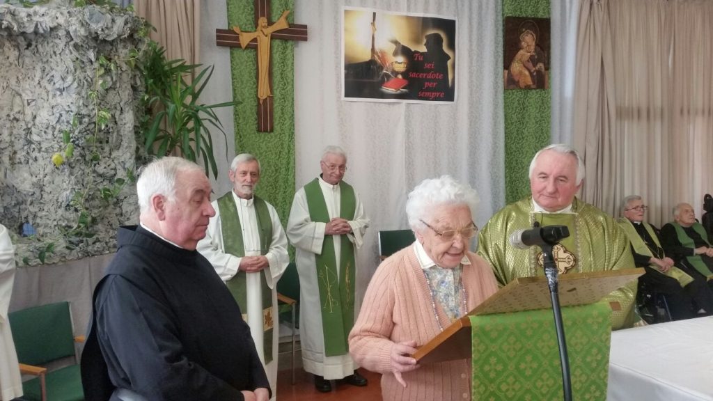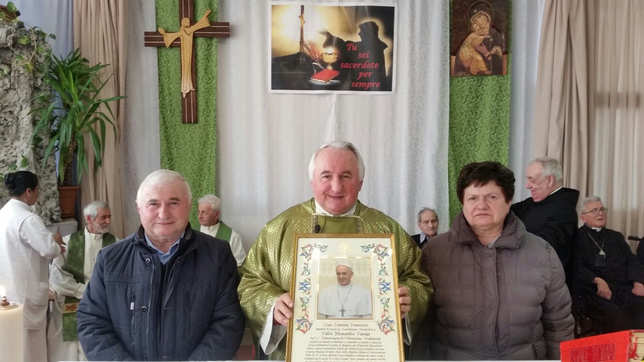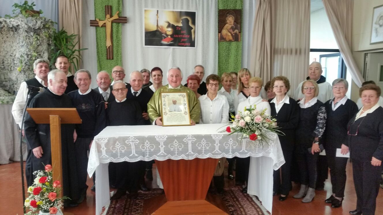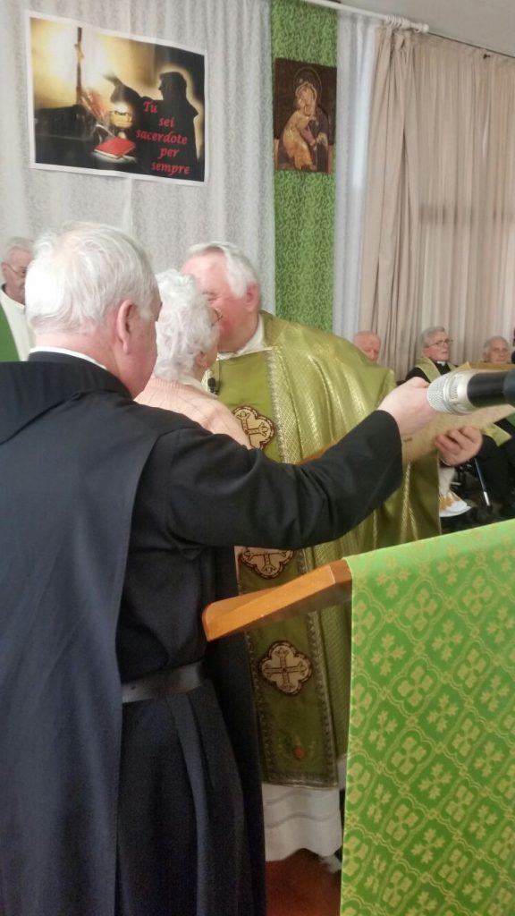 La casa di riposo “San Carlo” di Solbiate Comasco al completo ha festeggiato il suo cappellano, il betharramita padre Alessandro Paniga che – pur essendo anche superiore della comunità San Michele di Albavilla – ha voluto ricordare il cinquantesimo anniversario di sacerdozio proprio nella struttura sanitaria che da oltre dieci anni è diventata la sua casa. Ordinato sacerdote a Roma il 17 dicembre 1967, padre Alessandro ha vissuto diverse esperienze: dall’insegnamento (nel 1970 come professore alle scuole medie di Albavilla e poi al ginnasio) alla formazione dei novizi curata dal 1978 come superiore a Monteporzio. Dopo un’esperienza a Colico nella scuola superiore per geometri gestita dai padri, nel 2001 ha ricoperto il ruolo di Provinciale e ha poi trascorso un anno nella parrocchia Sacro Cuore di Lissone. Dall’ottobre 2003, però, si è trasferito come cappellano presso la residenza Sanitaria Assistenziale Fatebenefratelli di Solbiate e collabora con la Parrocchia di Solbiate e Concagno. Per il suo cinquantesimo, domenica 14 gennaio, non hanno voluto mancare il vicario d’Italia padre Piero Trameri e i padri Celeste Perlini, Luigi Speziale ed Ermanno Rasero. Presenti pure il coro dell’ospedale di Erba e moltissimi ospiti della casa di riposo che padre Alessandro visita quotidianamente. Per concludere in bellezza la Messa del cinquantesimo, è stato consegnato a padre Paniga il messaggio e gli auguri firmati da papa Francesco.