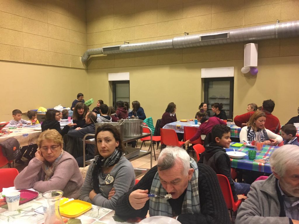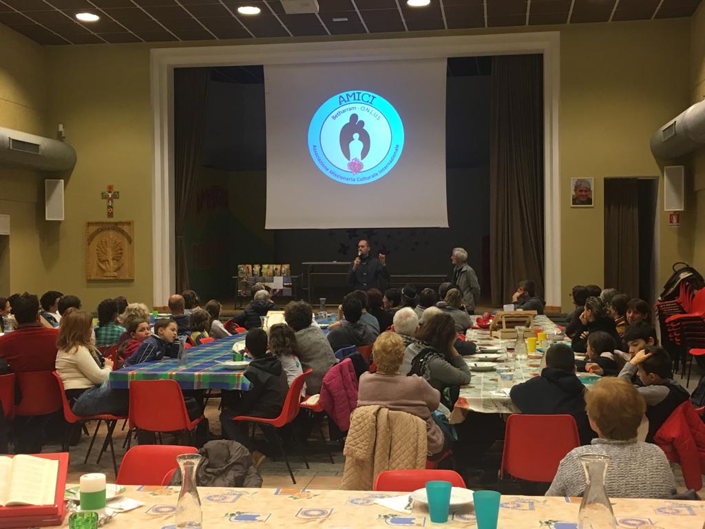 Una cena povera per iniziare la Quaresima. La parrocchia Natività di Maria Vergine di Talamona (Sondrio) ha deciso di iniziare il cammino verso la Pasqua riunendo in oratorio (intitolato a don Ugo Bongianni) la comunità e mettendo in tavola un piatto unico e semplice condito di solidarietà. A invitare a cena giovedì scorso (7 marzo) i parrocchiani tra cui anche alcuni bimbi delle classi di catechismo di Talamona e Campo Tartano ci ha pensato don Sergio Mazzina, parroco di Talamona, Campo Tartano e Tartano insieme a don Angelo Innocenti. È toccato invece a padre Piero Trameri, presidente di AMICI Betharram Onlus, con l’aiuto di un filmato (vedi qui) presentare la missione dei padri betharramiti, da oltre 30 anni impegnati in Repubblica Centrafricana, alla quale è stato devoluto il ricavato dell’iniziativa. In particolare Talamona con la cena povera si è impegnata a sostenere il progetto di riqualificazione della scuola Notre Dame de la Paix a Bimbo, quartiere periferico alle porte della capitale Bangui dove abitano oltre 100mila persone. Dal 2013 infatti – a seguito del colpo di Stato – gran parte della popolazione è fuggita dal centro della città dove si concentravano gli scontri più sanguinosi e si è riversata nelle periferie. Inizialmente gli organismi internazionali hanno assistito i rifugiati con generi di prima necessità, ma da tre anni gli aiuti sono cessati e la popolazione – non potendo ritornare ai propri quartieri – si è stabilita a Bimbo in modo definitivo ma precario. Il progetto prevede di ristrutturare l’edificio della scuola e creare nuove aule in muratura più sicure e più confortevoli con la realizzazione di nuove fondazioni, pilastri in cemento armato e murature nonché di acquistare banchi, tavoli e armadi e materiale scolastico. Questo progetto permetterà anche di sostenere economicamente cinque insegnanti dando loro la possibilità di reintegrarsi nel tessuto sociale: la scommessa è di riuscire ad aprire la scuola con l’inizio del nuovo anno scolastico.
