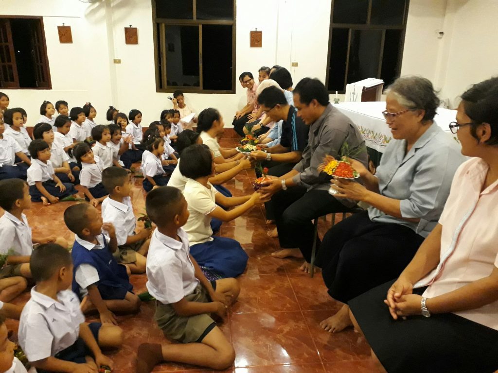 Lo fanno i piccoli ospiti ma anche i più grandi per ricompensare chi li ha accolti e si occupa di loro in una vera e propria cerimonia che all’Holy Family Catholic Centre, la struttura betharramita nel nord del Paese, è ormai tradizione. Anche se nel mese di gennaio è già prevista nel Paese la giornata per rendere merito agli insegnanti (il Wai Kru Day), la missione si è dotata di questo ulteriore rito di ringraziamento. Lo scorso 15 giugno dunque la chiesa della missione si è popolata per un momento di festa in cui i bambini hanno regalato fiori e lettere ai missionari e alle persone che li curano nella quotidianità: un piccolo gesto che vuole riassumere tutto l’amore che i piccoli sentono di ricevere dagli adulti, in un clima familiare. Il grazie va ai padri Jonh Chan, Alberto Pensa e Petter Moyoe ma anche alle ragazze dello staff che con amore organizzano le giornate e seguono i piccoli nella loro crescita proprio come sorelle maggiori.