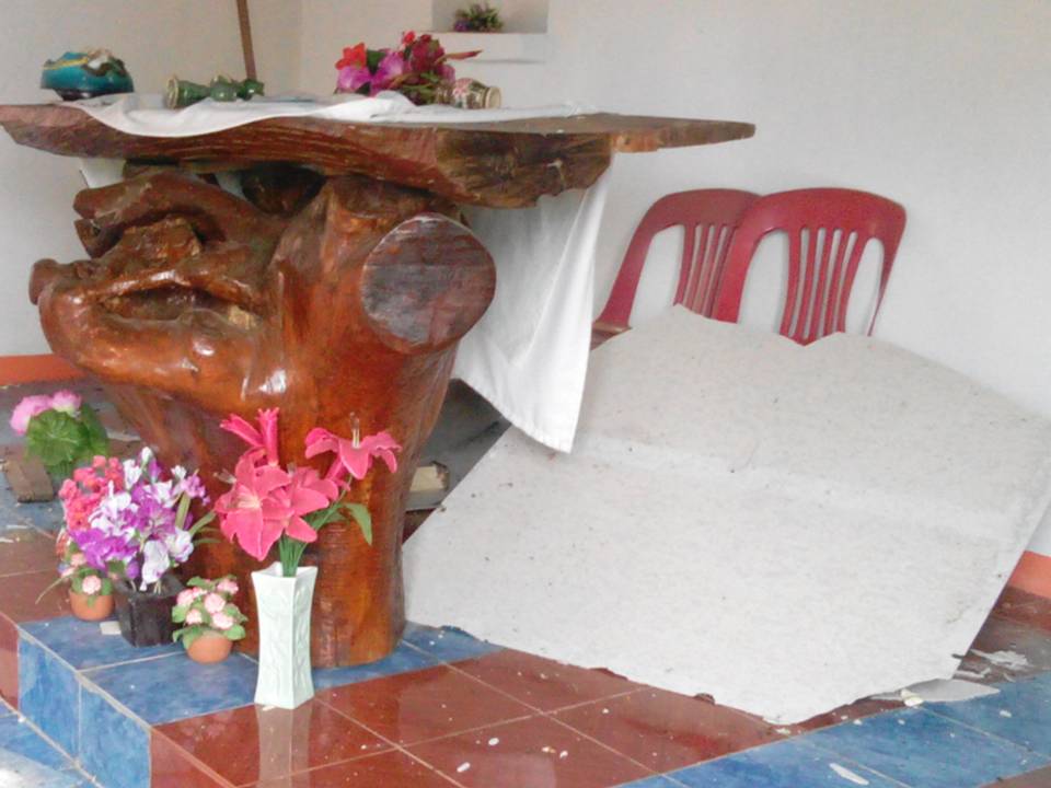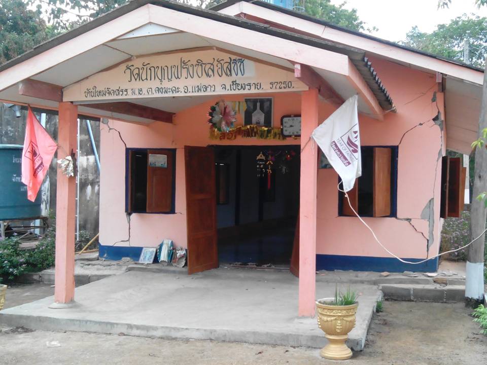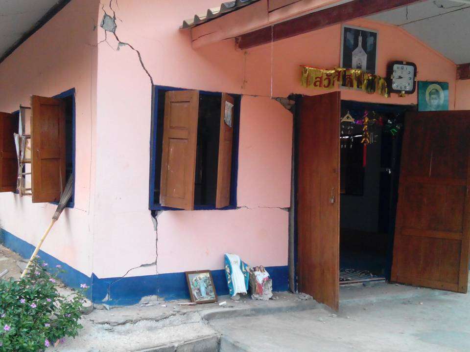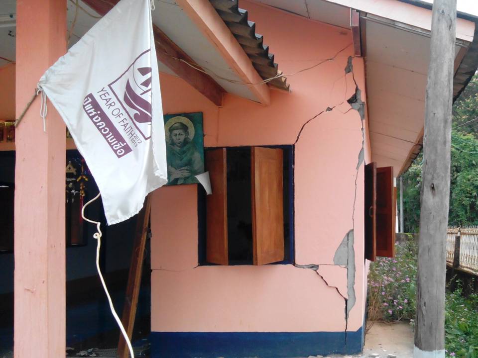 «Lunedì 5 maggio il nord della Thailandia, anche nella provincia di Chiang Rai, e stato colpito da una scossa di terremoto di magnitudo 6. Padre Alberto Pensa ci ha scritto e inviato le foto relative ai danni procurati dal terremoto al villaggio di Ban Mai Jadsan. Danni alla chiesa del villaggio, da lui costruita e dedicata a San Francesco di Assisi, ed alcune case adiacenti. Ecco le parole di p. Alberto: “La chiesa è per il momento inagibile, perché le due colonne davanti sono state danneggiate e così pure l’ultima colonna a sinistra: questo rende insicura la chiesa. Infatti i tecnici mandati a controllare ne hanno vietato l’uso per il momento. La gente è rimasta molto colpita per aver visto le statue della Madonna e della Sacra Famiglia a pezzi. Alcune case sono danneggiate seriamente”. Pochi giorni dopo, si è deciso di demolire la chiesa perché pericolante, per poter poi costruirne una nuova all’entrata del villaggio».