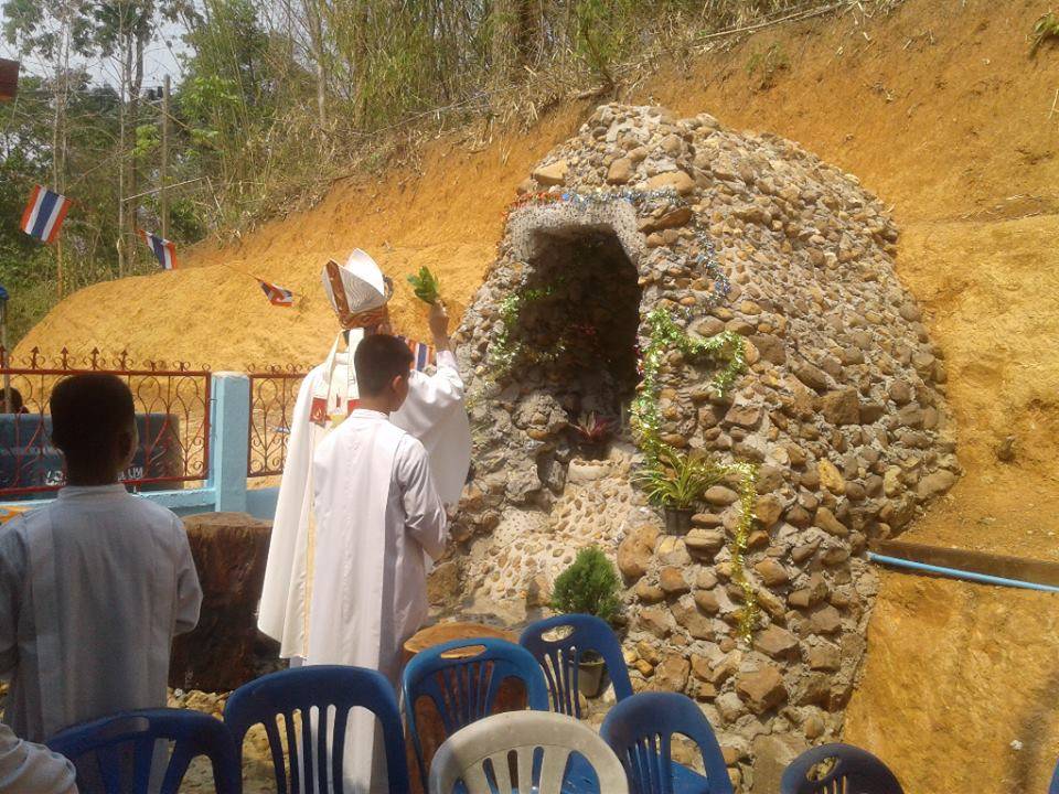 La giornata è cominciata con l’arrivo del Vescovo verso le 9,45 ricevuto dalla gente del villaggio e dagli ospiti venuti numerosi anche da altri villaggi e accompagnato con canti negli ultimi cento metri fino alla chiesa nuova.. Alle 10.30 ha avuto inizio la cerimonia con la benedizione della grotta e della statua della Madonna di Lourdes, la benedizione della chiesa e la Santa Messa. A seguire la celebrazione è stato organizzato un momento di festa dagli abitanti del villaggio.