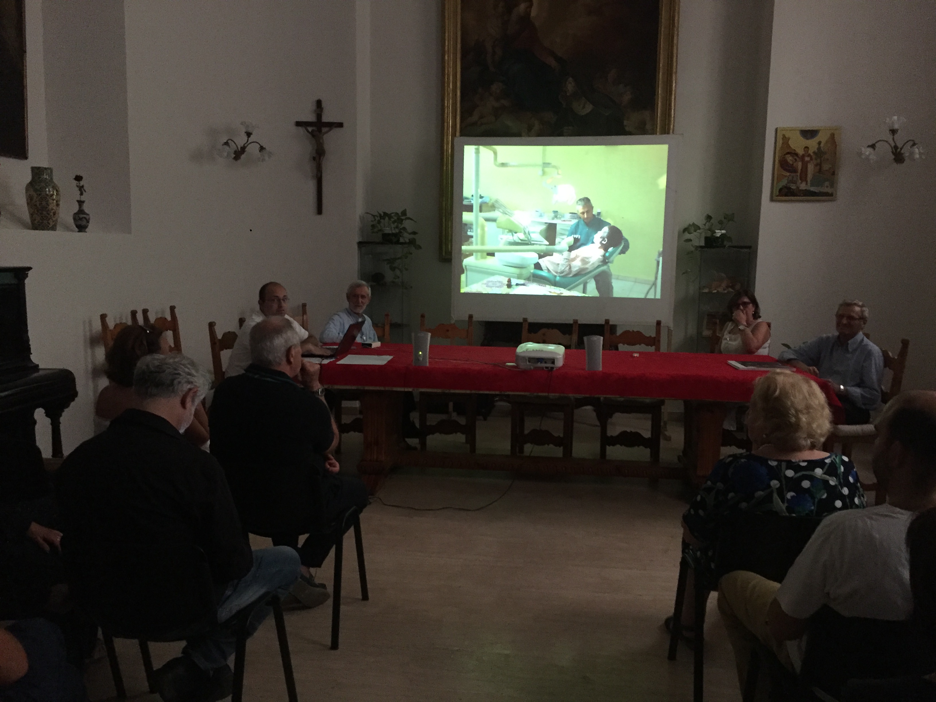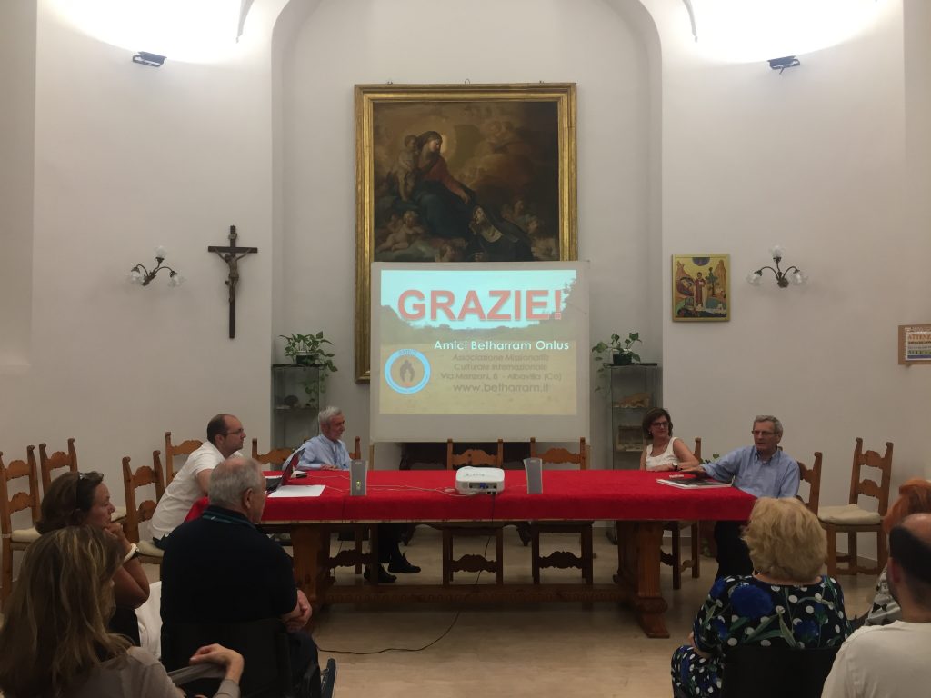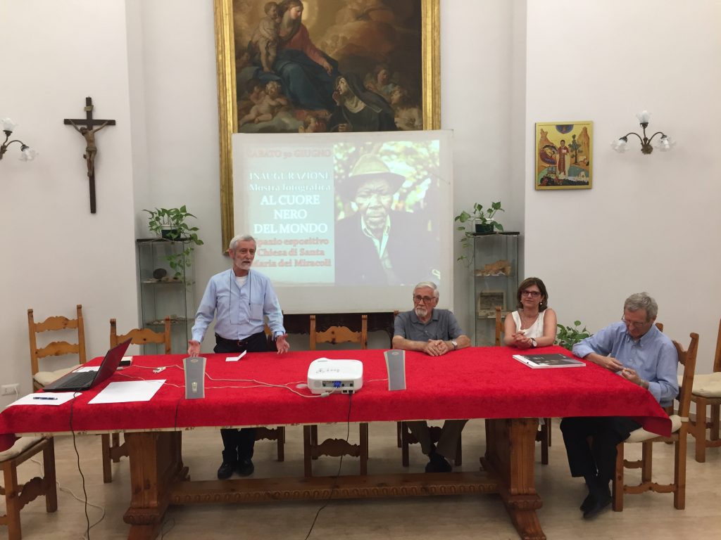 Un missionario barbuto che – dopo trentadue anni in Repubblica Centrafricana – parla italiano e il dialetto sango con la stessa scioltezza, inaugura con un racconto in presa diretta la versione romana della mostra “Al cuore nero del mondo” visitabile fino all’8 luglio nello spazio espositivo di via del Corso 528. È padre Arialdo Urbani, il fondatore della missione nel centro dell’Africa che è l’argomento della rassegna firmata dal fotoreporter Vittore Buzzi e già portata a Milano, Lissone, Bollate e Monza dal Vicariato d’Italia con il suo centro di comunicazione Betagorà, AMICI Betharram Onlus e – per la tappa nella capitale – l’associazione Il Mosaico. «Quando sono arrivato – ha spiegato padre Arialdo all’inizio della tavola rotonda d’apertura, sabato 30 giugno – non c’era nessuna scuola, i villaggi erano abbandonati. Fermandomi in uno di questi villaggi, un giorno, trovai un giovanotto con un pezzo di compensato: stava costruendo la scuola. Mi spiegò che i genitori pagavano il maestro pochi centesimi di euro per far funzionare le classi ma solo fino a dicembre perché poi tutti erano impegnati nei campi… A quel giovane proposi subito di stipulare un contratto per finire l’anno e insegnare fino al mese di giugno: l’esperienza andò bene ma da lì è nata l’idea di un progetto scuole più ampio. Così, piano piano, le scuole si sono moltiplicate, alcune oggi hanno 300 alunni e in tutto ci sono 54 maestri. Le nostre scuole sono le uniche che hanno funzionato anche in questi 5 anni di guerra civile». A spiegare più analiticamente il lavoro dei missionari è stato il presidente dell’associazione missionaria AMICI Betharram Onlus e Vicario d’Italia padre Piero Trameri; mentre è toccato al confratello padre Mario Longoni, già presidente dell’associazione Il Mosaico impegnata nella casa-famiglia per persone in AIDS a Monteporzio Catone, raccontare il lavoro di Buzzi che «è riuscito a fotografare quello che davvero è l’esperienza di vita dei missioni con un’attenzione che non è di tutti. quelle fotografie riescono a cogliere la realtà vissuta delle persone». Proprio a partire dalla sua esperienza ha iniziato l’intervento anche la dottoressa Nicoletta Orchi, infettivologa presso l’ospedale Spallanzani di Roma ma anche volontaria a Bouar presso il Centro di Cura “Saint Michel” specializzato nella prevenzione e cura delle persone in AIDS: «Spesso vado nelle scuole ma ho l’impressione che non ci si renda conto di questa realtà finché non si vivono certe esperienze. Lo dico ai giovani: ognuno di voi dovrebbe fare un’esperienza in Centrafrica. Anche se non si è medici o infermieri: mi ha meravigliato quanta gente prende le ferie per dedicare tempo alle missioni betharramite di Niem e Bouar». Per il Centrafrica, in conclusione di giornata, ha suonato anche l’associazione AIMA/CAMBRISTI Roma con la clarinettista Cristina Gregorini e l’organista Santina Amici, Valentina Licatro al flauto e al violoncello Antonella Daisy Basili.