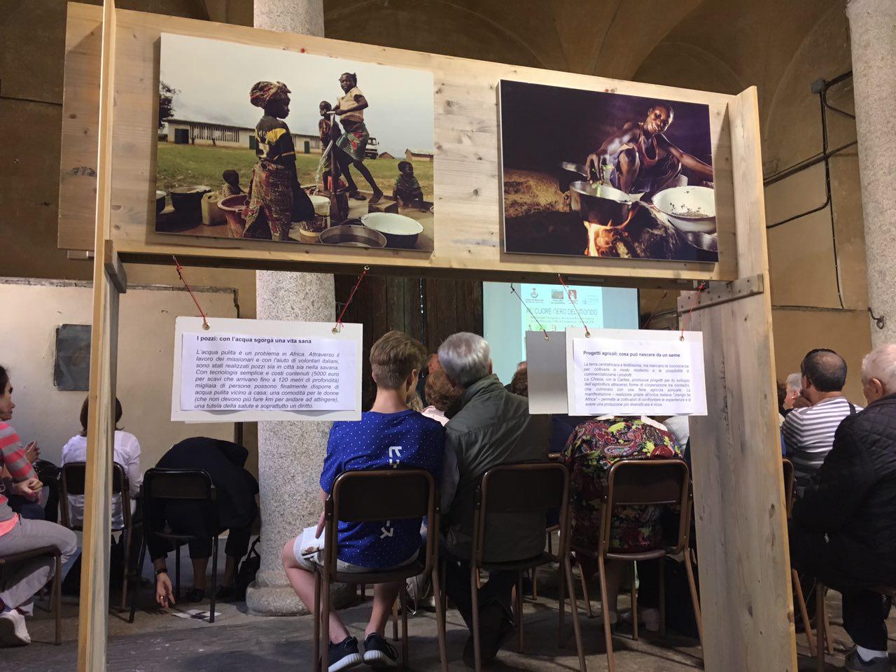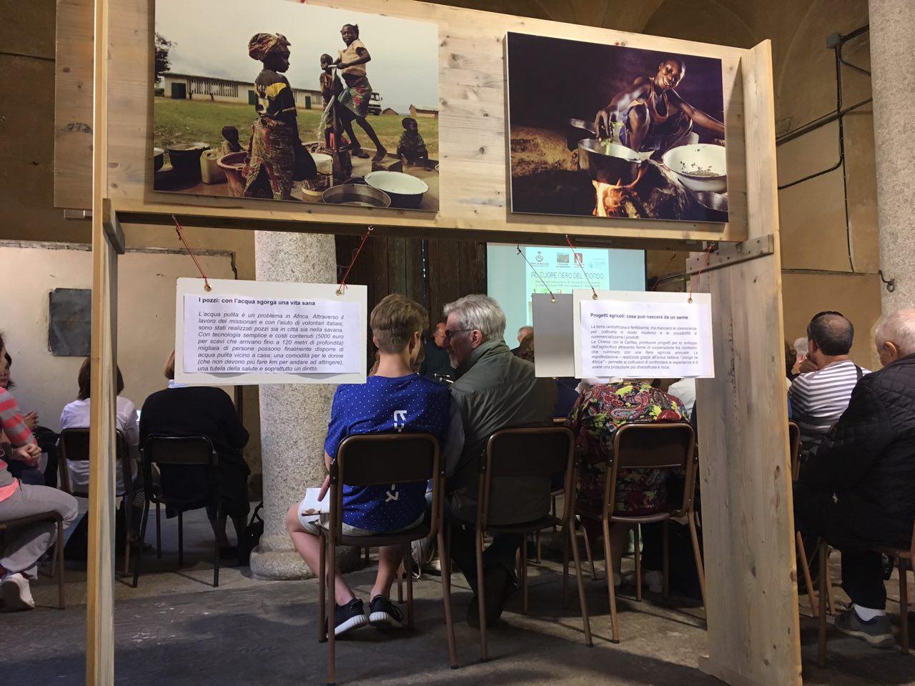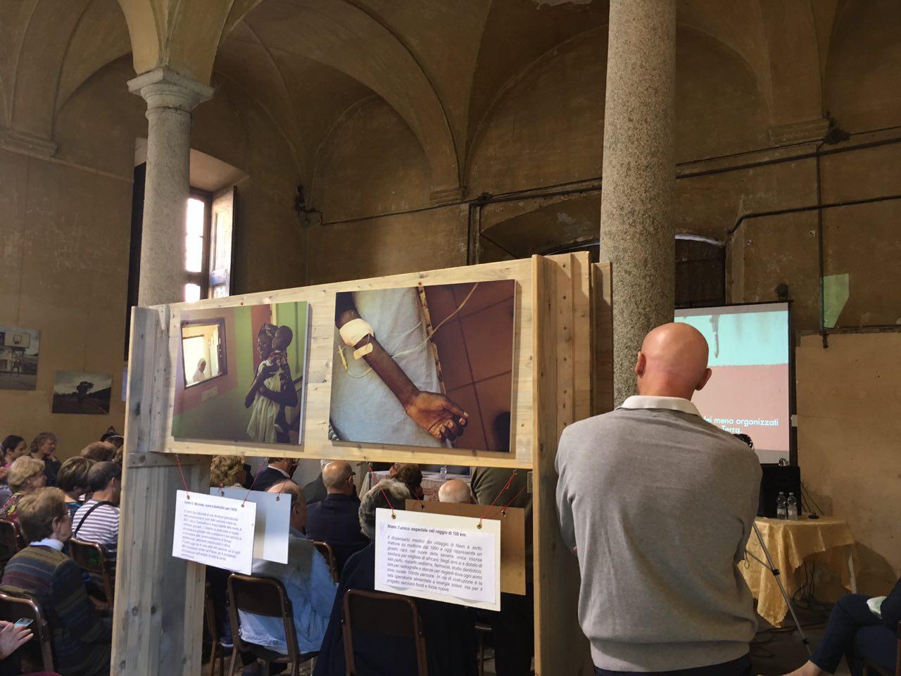 Un pomeriggio che è arrivato al cuore dei partecipanti, quello di ieri, sabato 13 maggio, incorniciato da una giornata di sole e dalle suggestive stanze della settecentesca Villa Arconati di Castellazzo di Bollate, vero gioiello a nord di Milano. Proprio qui, infatti, ha preso il via la mostra fotografica «Al cuore nero del mondo» del fotoreporter Vittore Buzzi sulle missioni betharramite in Repubblica Centrafricana, già realizzata da AMICI Betharram Onlus con il centro di comunicazione Betagorà e ora in collaborazione con la Fondazione Augusto Rancilio, l’associazione Vivere Castellazzo e la parrocchia betharramita San Guglielmo. Scatti alla ricerca della luce che immortalano l’impegno trentennale di co-progettazione di questi sacerdoti con la gente del posto, in una missione che è di aiuto agli altri ma sopratutto di condivisione. «Questa è una storia che ha a che fare con le minoranze, – comincia il moderatore Roberto Beretta, dopo i saluti istituzionali di padre Egidio Zoia, dell’ingegnere Rancilio e degli assessori al bilancio e alla cultura del Comune di Bollate – Si tratta di pochi uomini, appartenenti a una piccola congregazione, che scelgono di vivere in uno dei Paesi più poveri al mondo. Eppure in trent’anni questa minoranza ha fatto moltissimo: 50 scuole di villaggio, un ospedale che è punto di riferimento della zona e un centro per persone in AIDS che è il migliore del Paese; e poi progetti agricoli, pozzi, ponti». «I missionari hanno fatto davvero tanto nel Paese, – conferma Giovanni Parolari a nome di AMICI Betharram Onlus – non solo per l’eccellenza delle strutture. Sono diventati un punto di riferimento per un’intera regione e non se ne sono mai andati, nemmeno durante i momenti peggiori di guerra civile quando gli sfollati invadevano la missione, unico posto sicuro… Il vero spirito del missionario esce in situazioni drammatiche, come quella che proprio in questi giorni si rivive nel Paese». Anche Vittore Buzzi si è affezionato a questi irriducibili: «Io ho potuto fotografare quel che ho fotografato grazie alla gente che mi ha permesso di entrare nella sua casa e grazie ai missionari che tanto hanno fatto per la popolazione. Io i betharramiti li chiamo i reparti speciali della Chiesa cattolica, al lavoro in un mondo di frontiera. Oggi giungono notizie poco confortanti dal Centrafrica e io penso a loro – Tiziano, Beniamino, Angelo, Mario e Arialdo, il fondatore della missione. Spero di abbracciarlo presto e fumarmi un sigaro con lui».