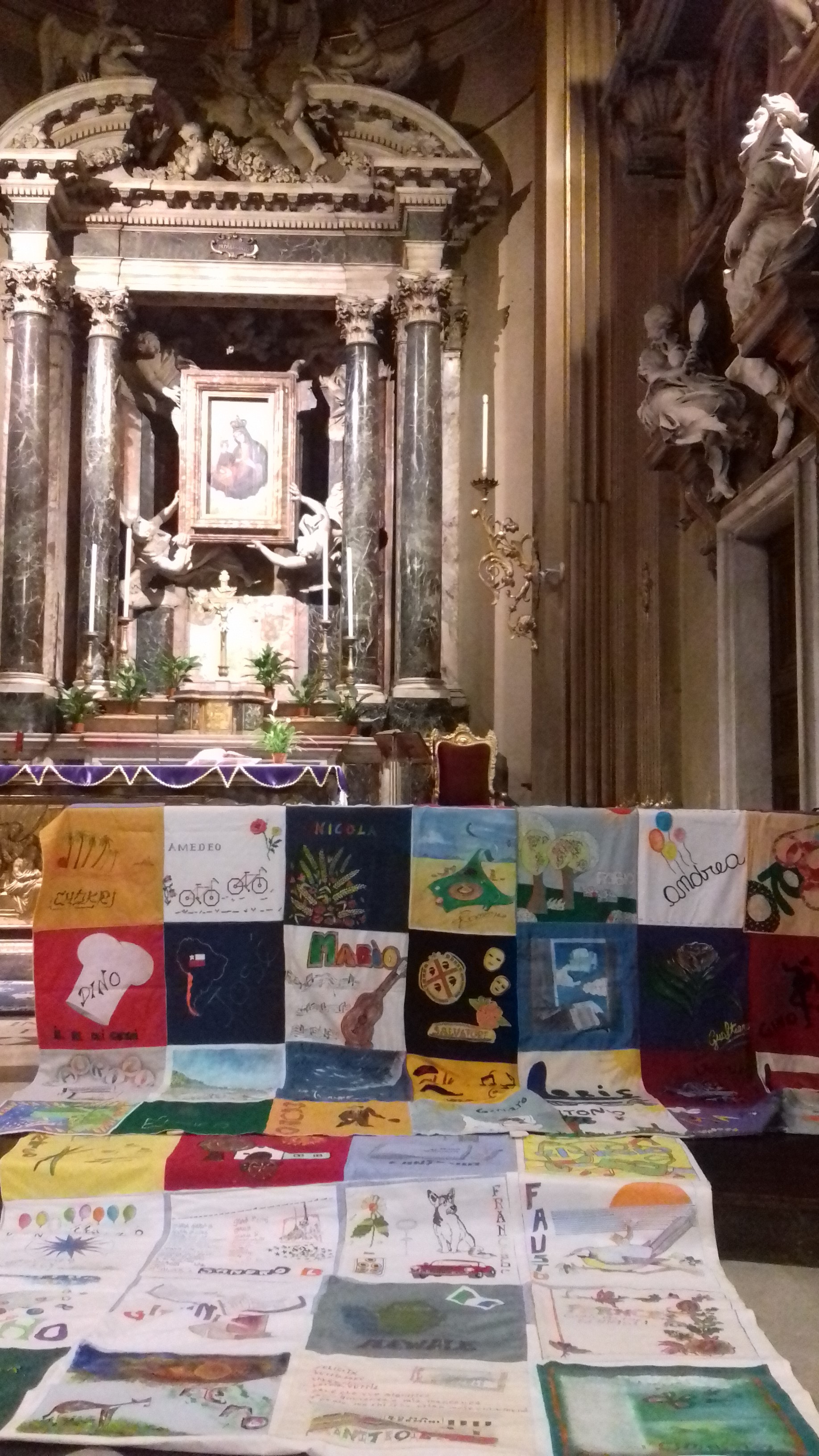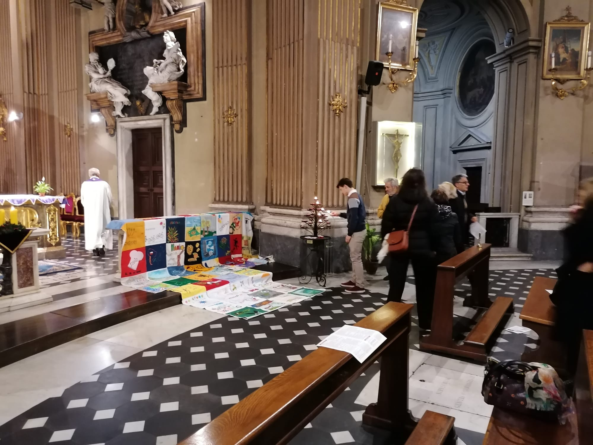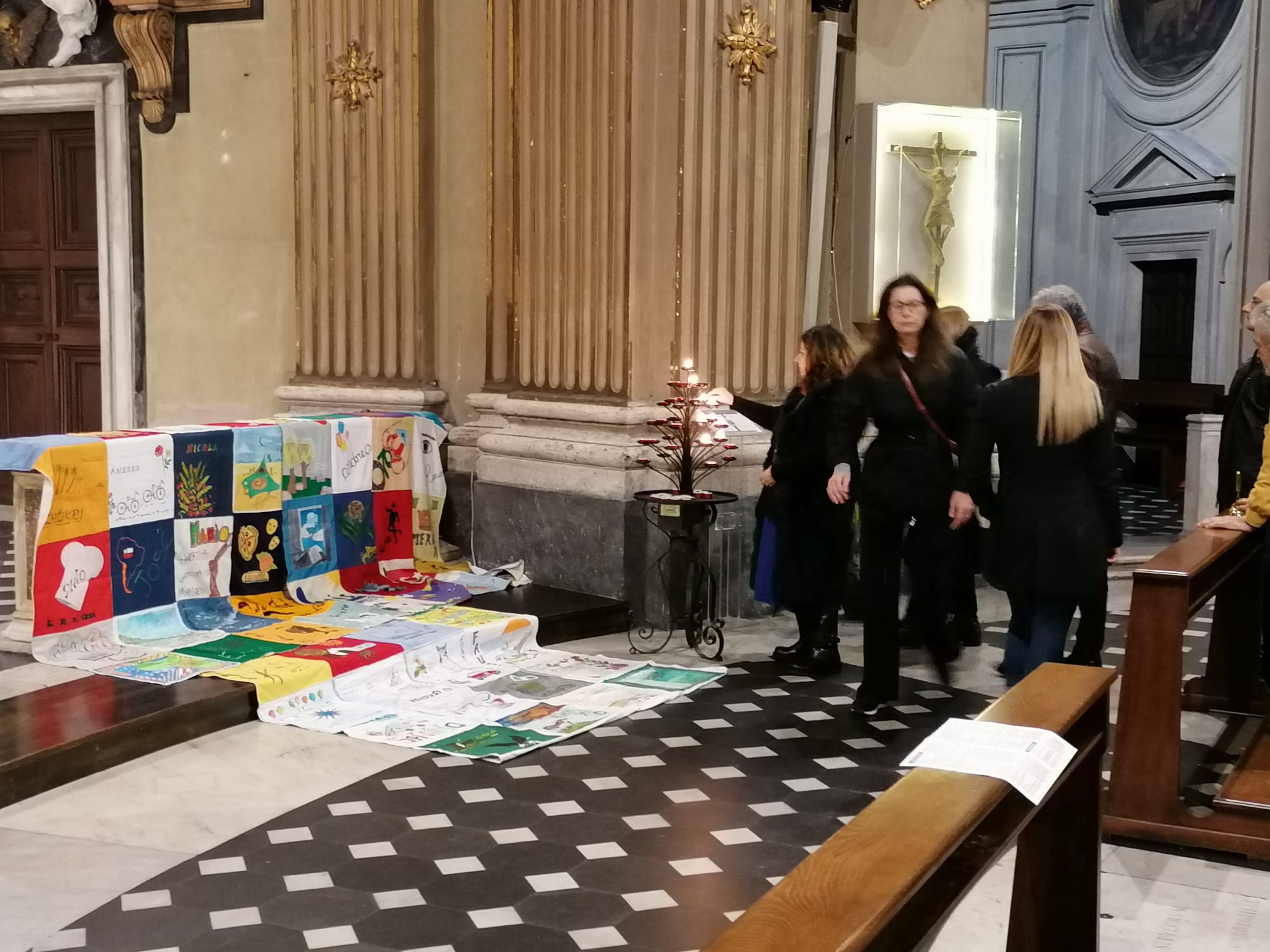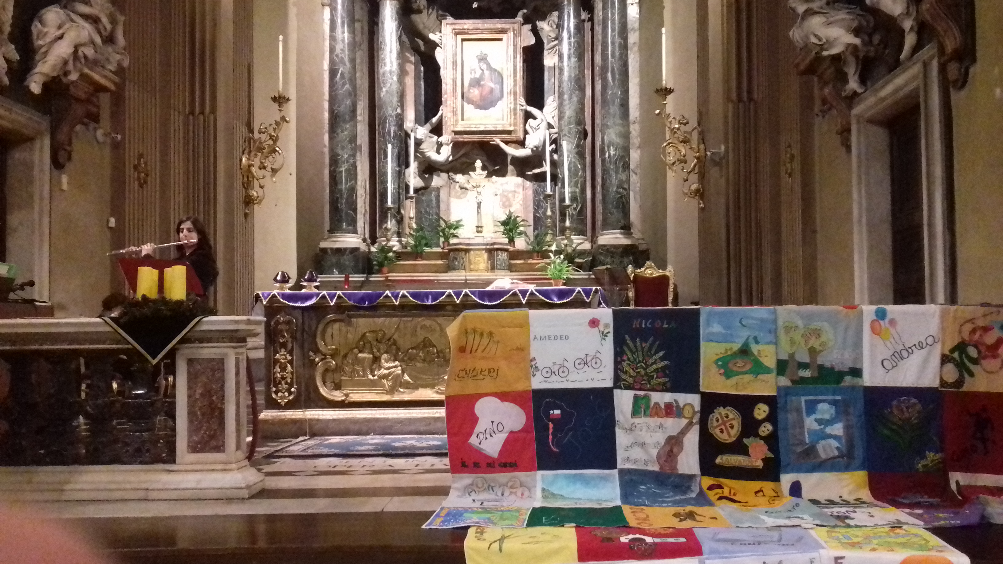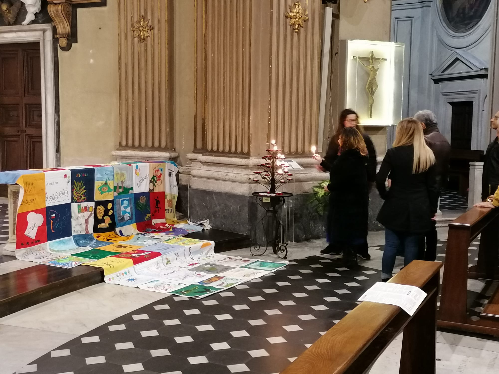 La Giornata mondiale contro l’Aids (1 dicembre) l’ha celebrata in musica la casa-famiglia Villa del Pino che da 27 anni si occupa dell’assistenza di persone con Hiv. Nella Chiesa dei Miracoli in piazza del Popolo a Roma gestita dai padri betharramiti, amici e volontari legati all’opera e all’associazione Il Mosaico si sono ritrovati prima per assistere al concerto preparato da alcune musiciste e poi per celebrare la messa in ricordo di tutti gli ospiti scomparsi a Villa del Pino. Come ogni manifestazione ufficiale, la casa-famiglia ha portato sull’altare il patchworkuna grande coperta composta da 64 pezzi di stoffa, uno per ciascuno scomparso, decorato dai volontari che l’hanno conosciuto. Il nomi di tutti gli ospiti defunti sono stati letti uno ad uno e su ciascun nome le persone presenti sono state invitate ad accendere un lume sul candeliere.